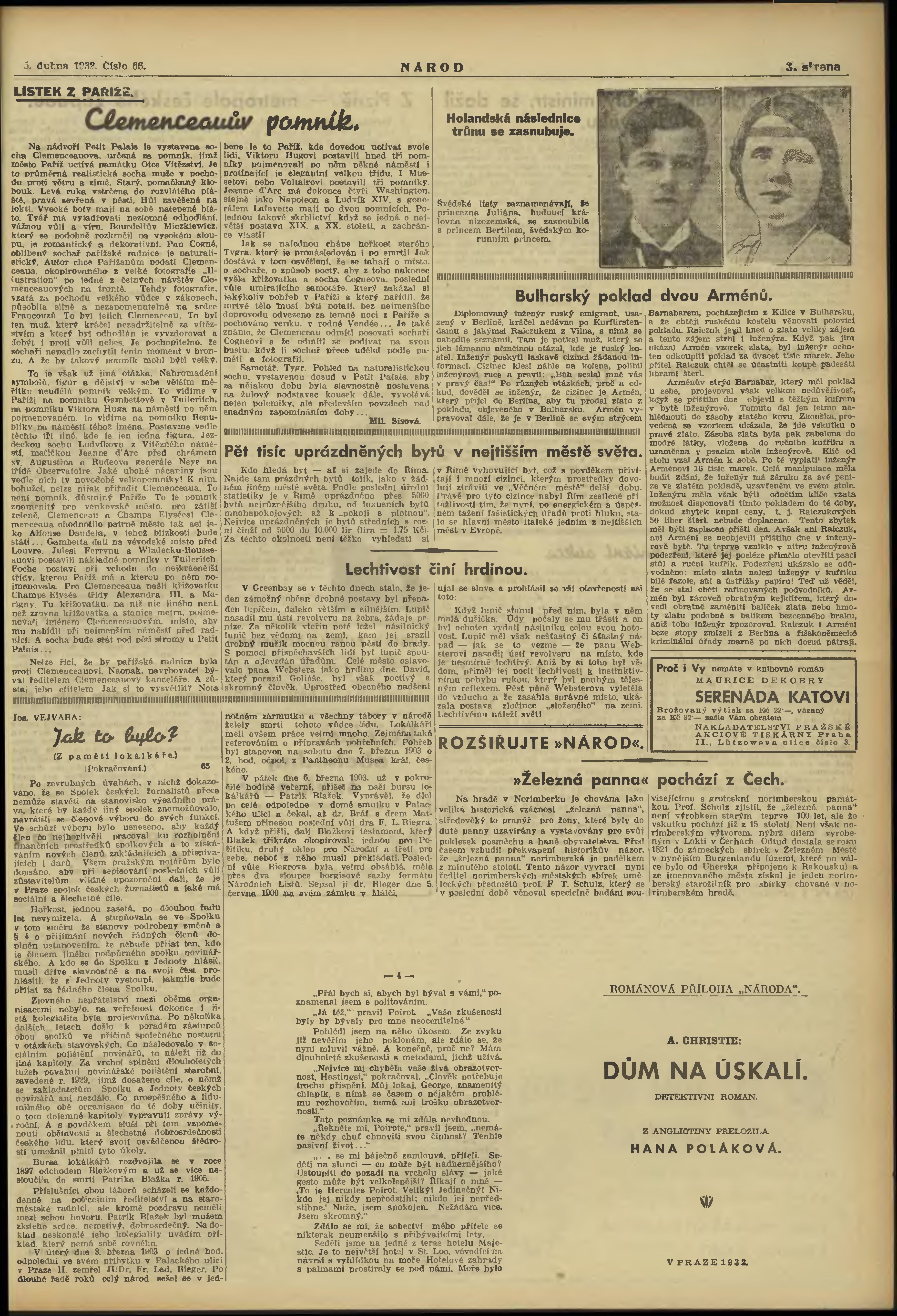* Datum vydání výtisku: 2.4.1932 Číslo výtisku: 65