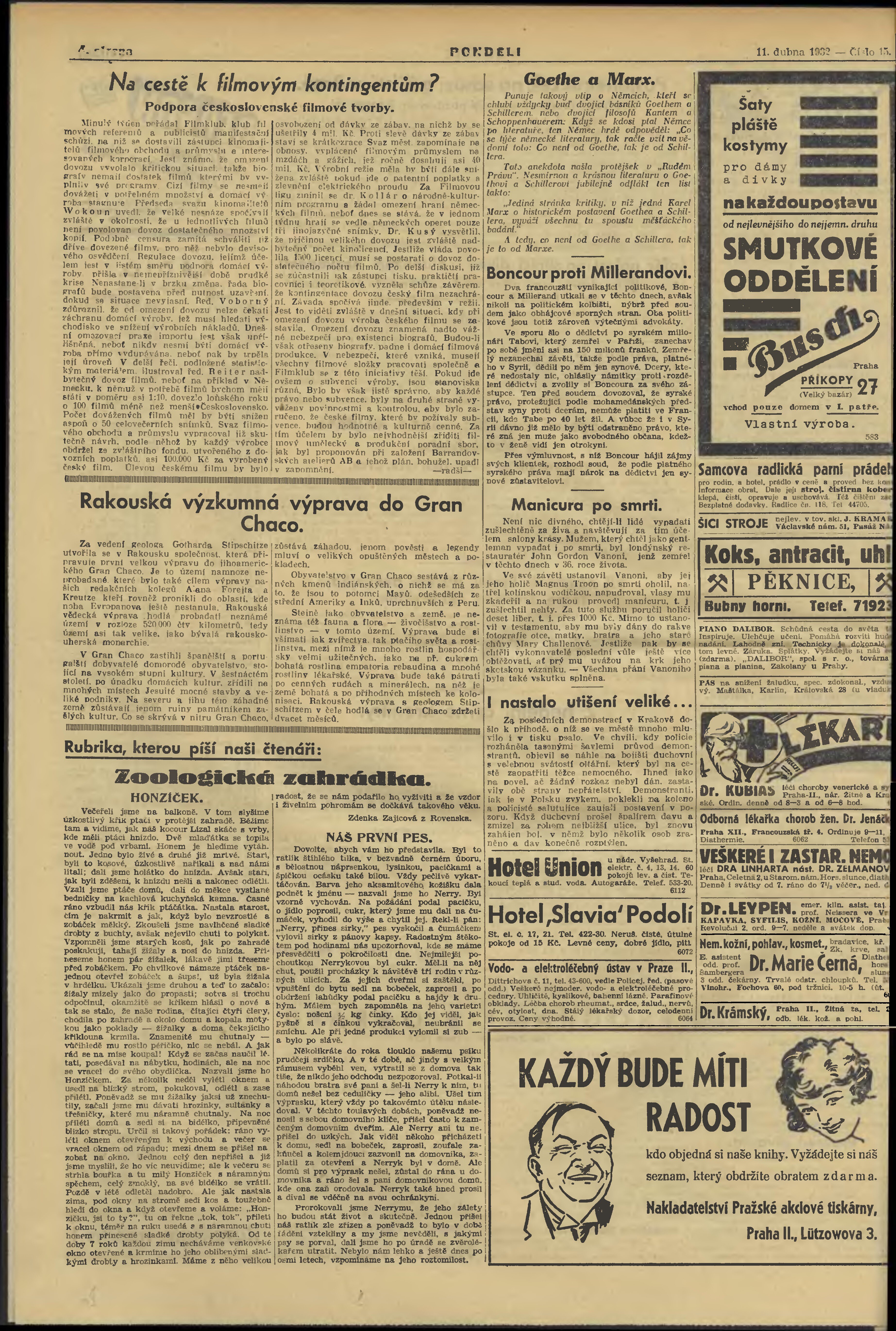 * Datum vydání výtisku: 11.4.1932 Číslo výtisku: 15