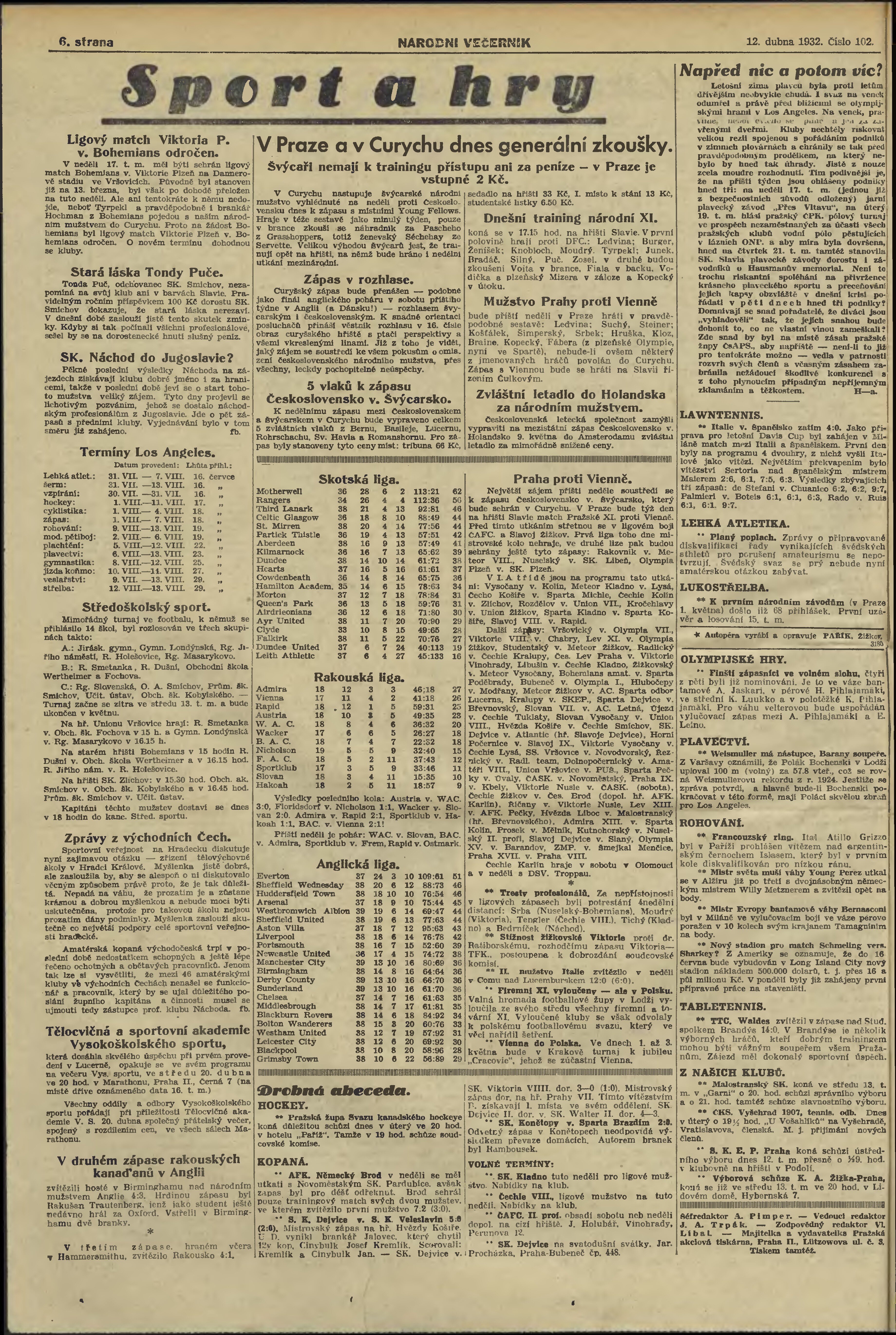 * Datum vydání výtisku: 12.4.1932 Číslo výtisku: 102 Poznámky k výtisku: večerní vydání;