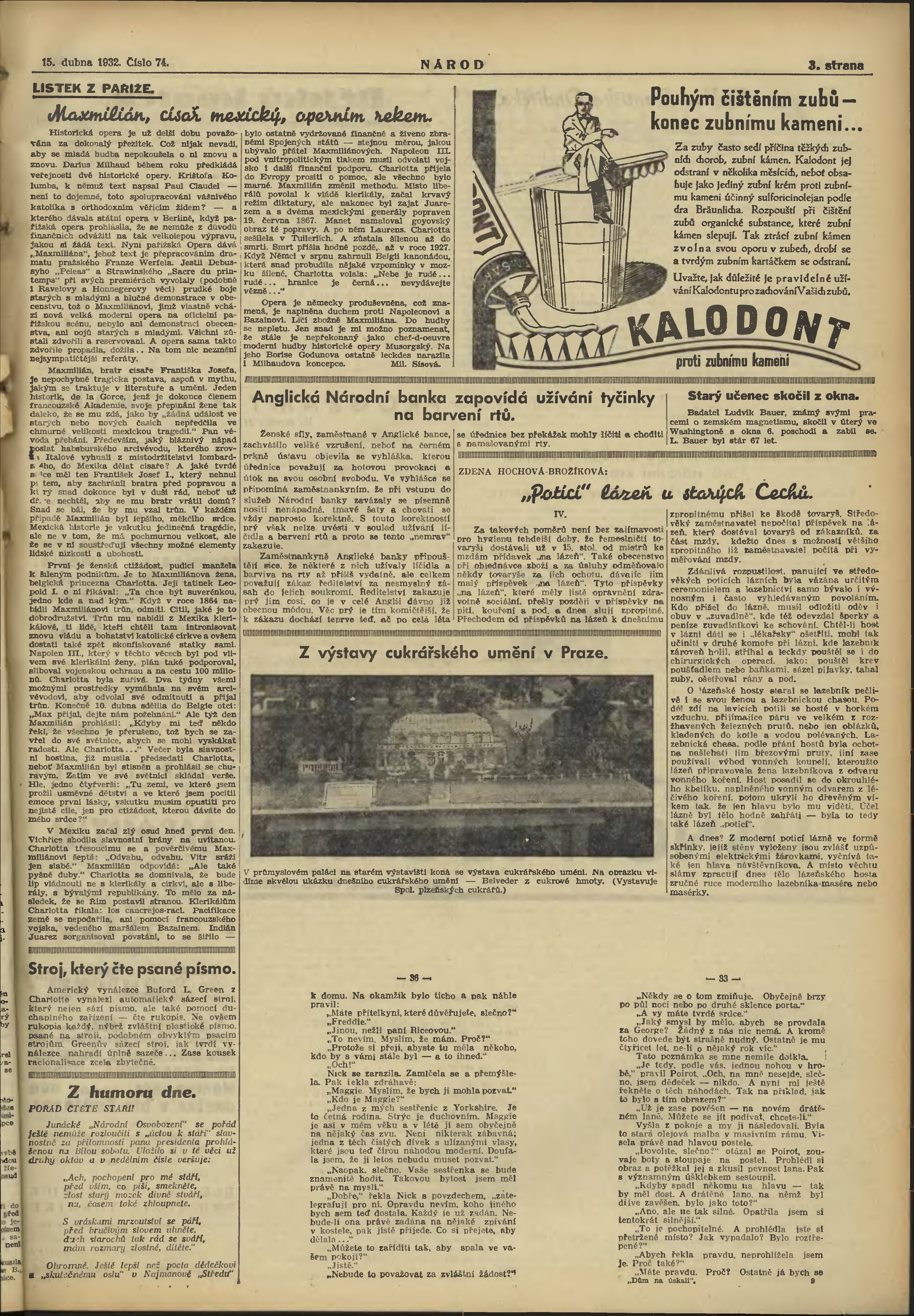 * Datum vydání výtisku: 15.4.1932 Číslo výtisku: 74