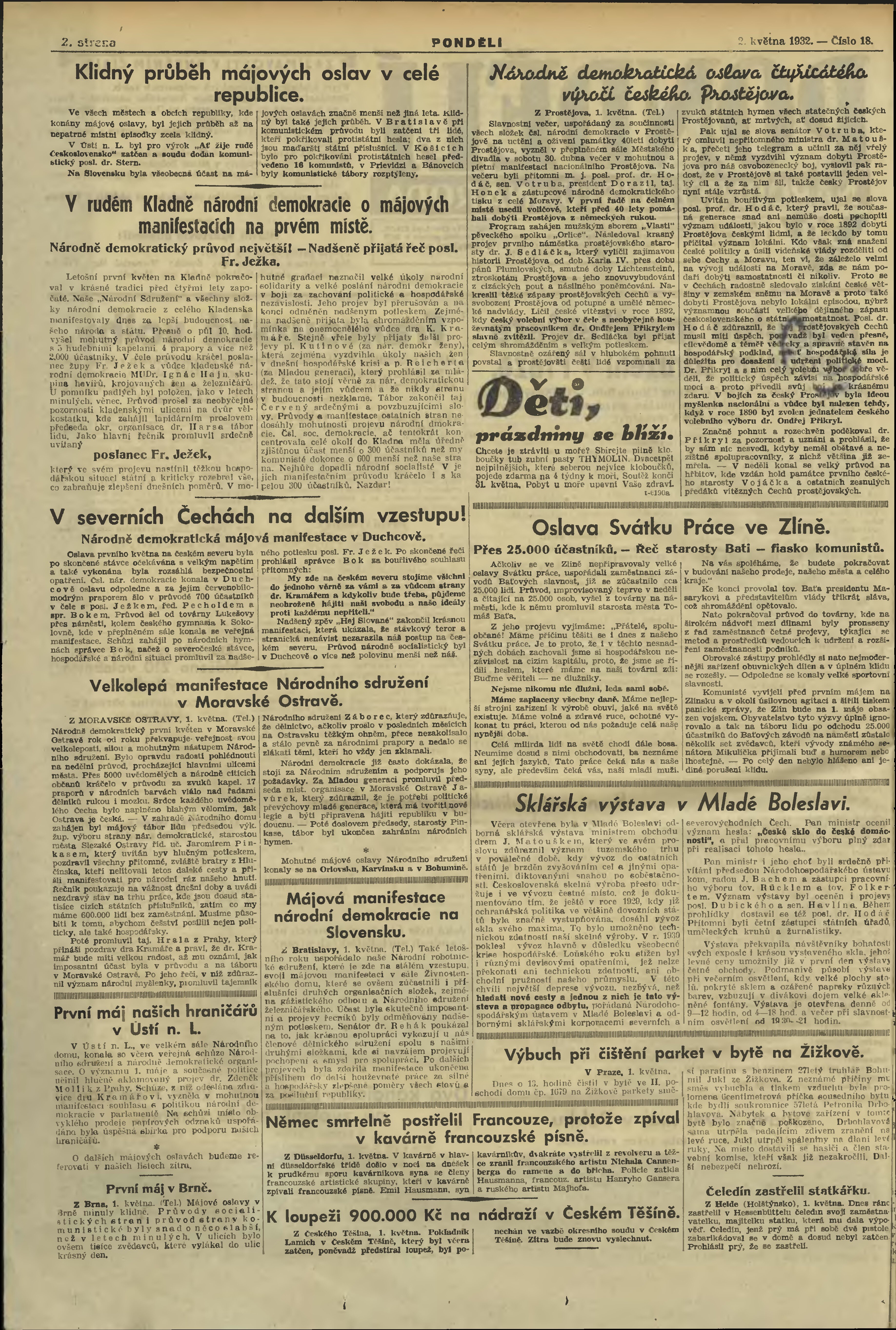 * Datum vydání výtisku: 2.5.1932 Číslo výtisku: 18