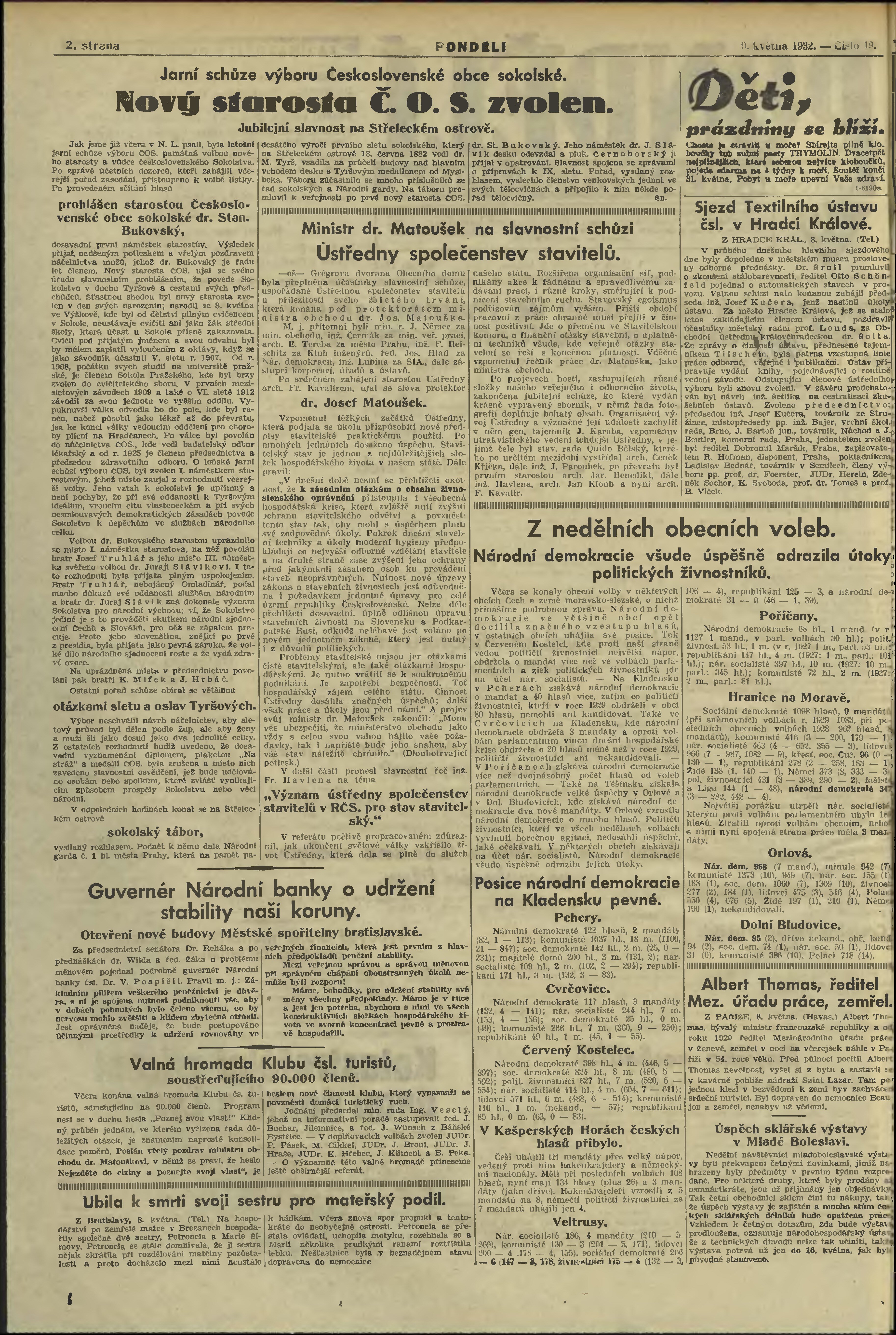 * Datum vydání výtisku: 9.5.1932 Číslo výtisku: 19