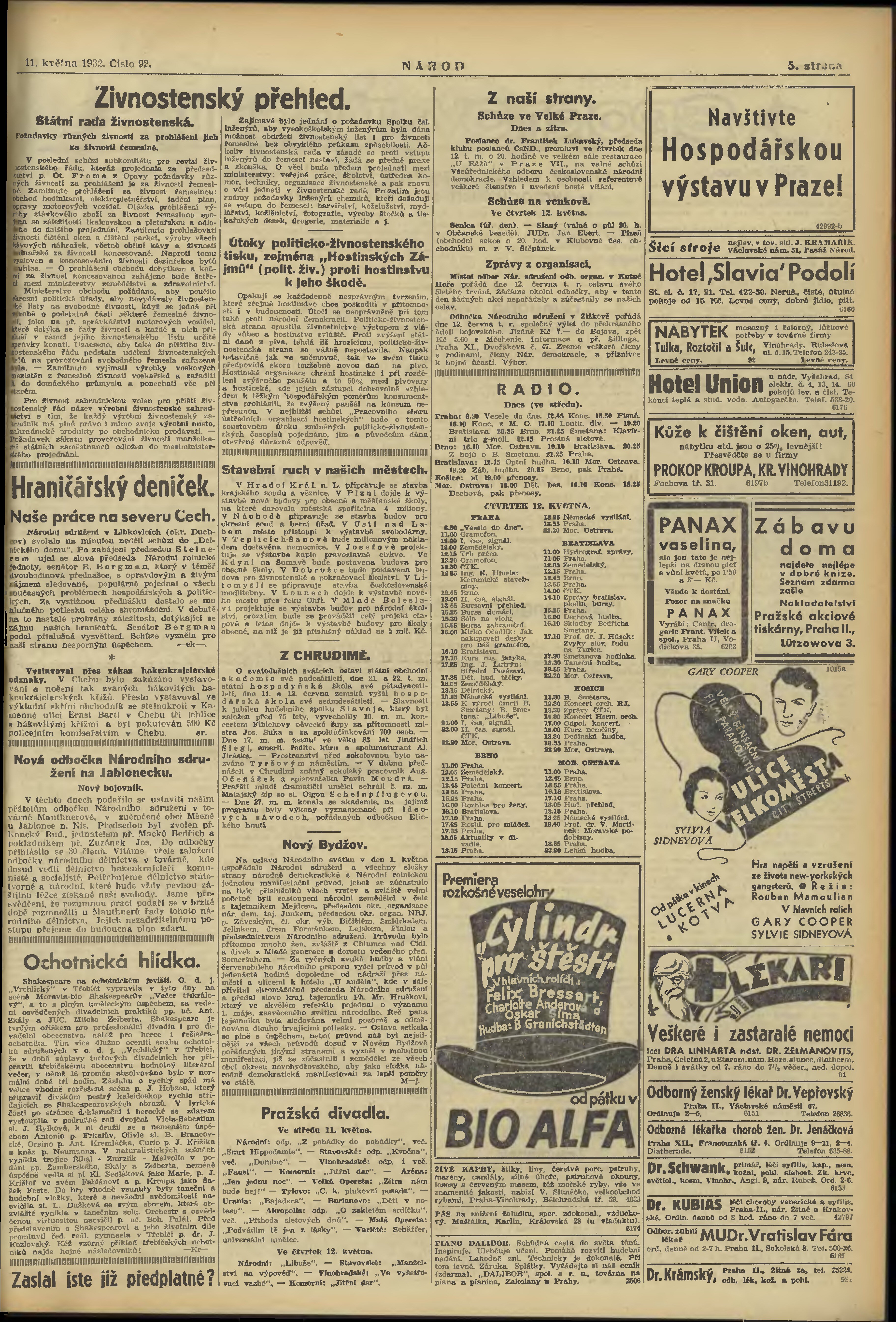 * Datum vydání výtisku: 11.5.1932 Číslo výtisku: 92