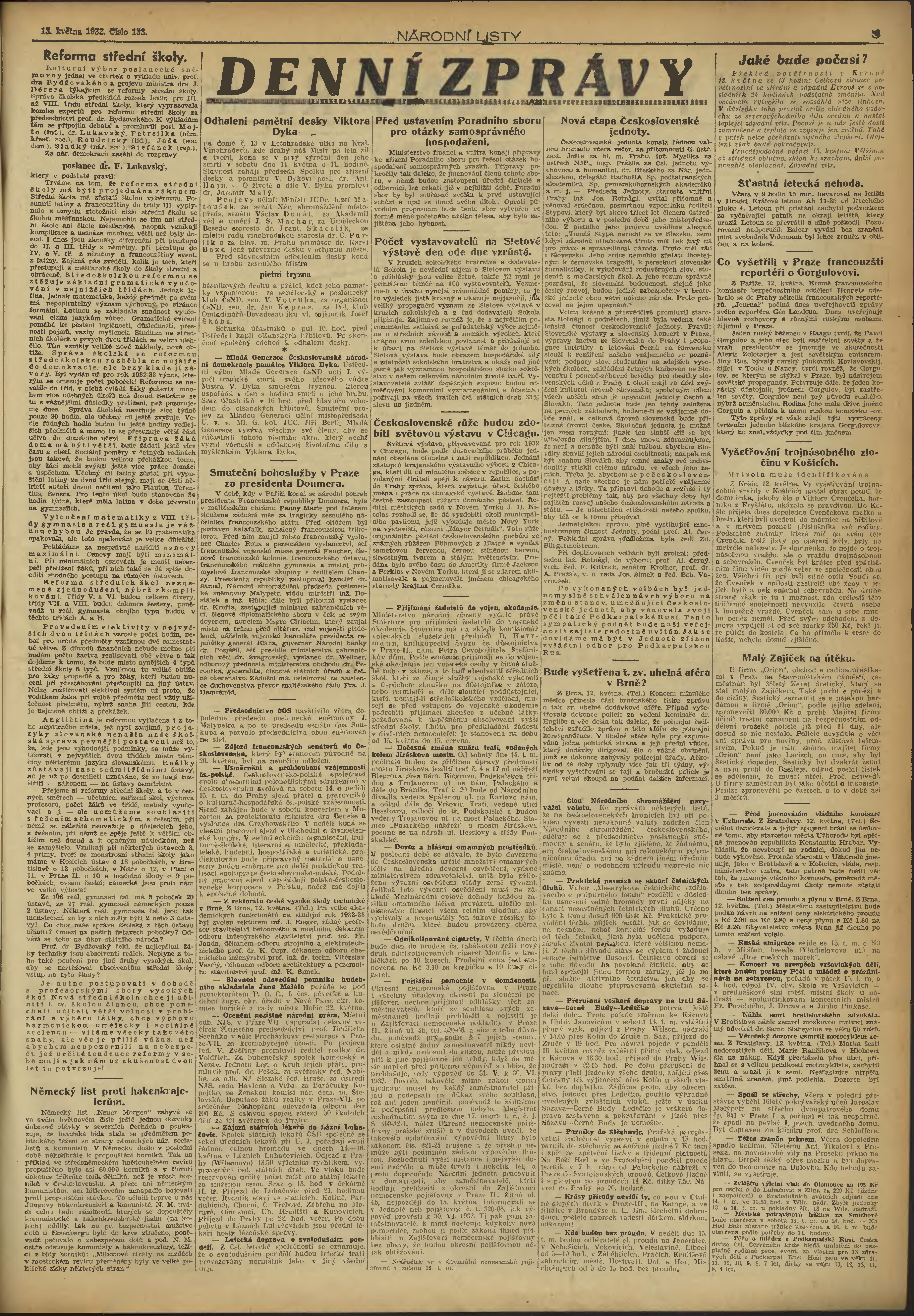* Datum vydání výtisku: 13.5.1932 Číslo výtisku: 133 Poznámky k výtisku: obsahuje přílohu Knihy a čtenáři;