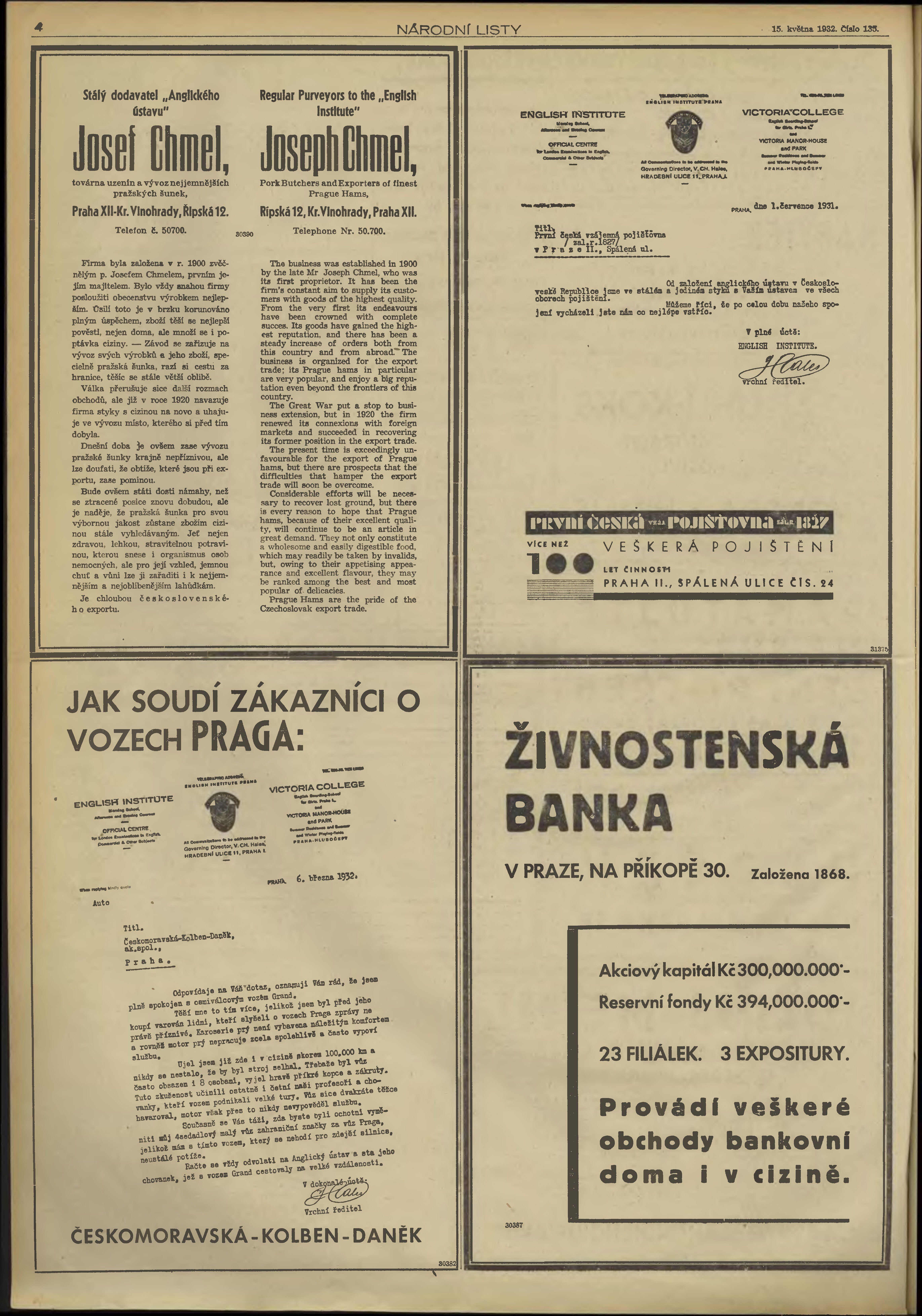 * Datum vydání výtisku: 15.5.1932 Číslo výtisku: 135 Typ výtisku: příloha