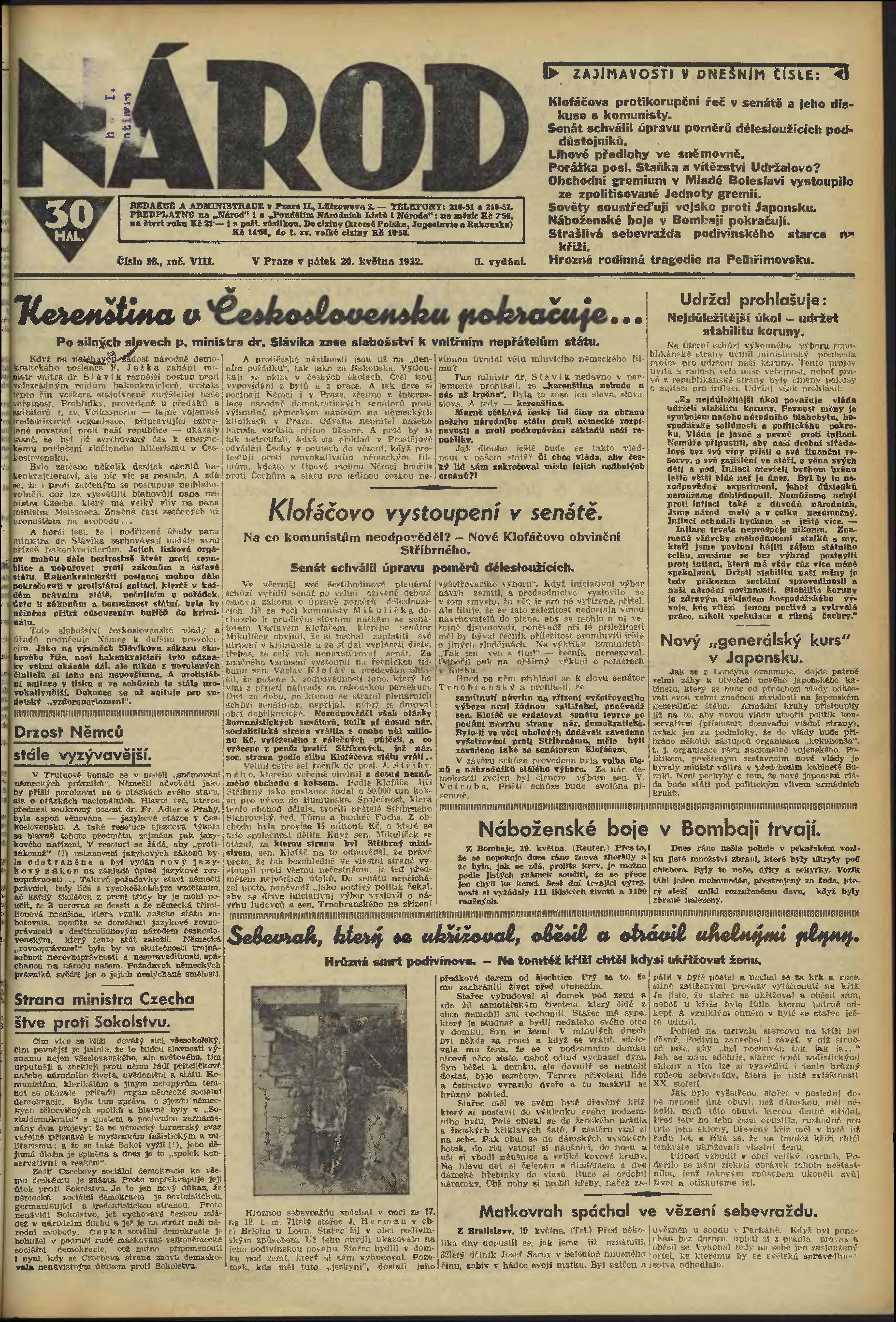 * Datum vydání výtisku: 20.5.1932 Číslo výtisku: 98
