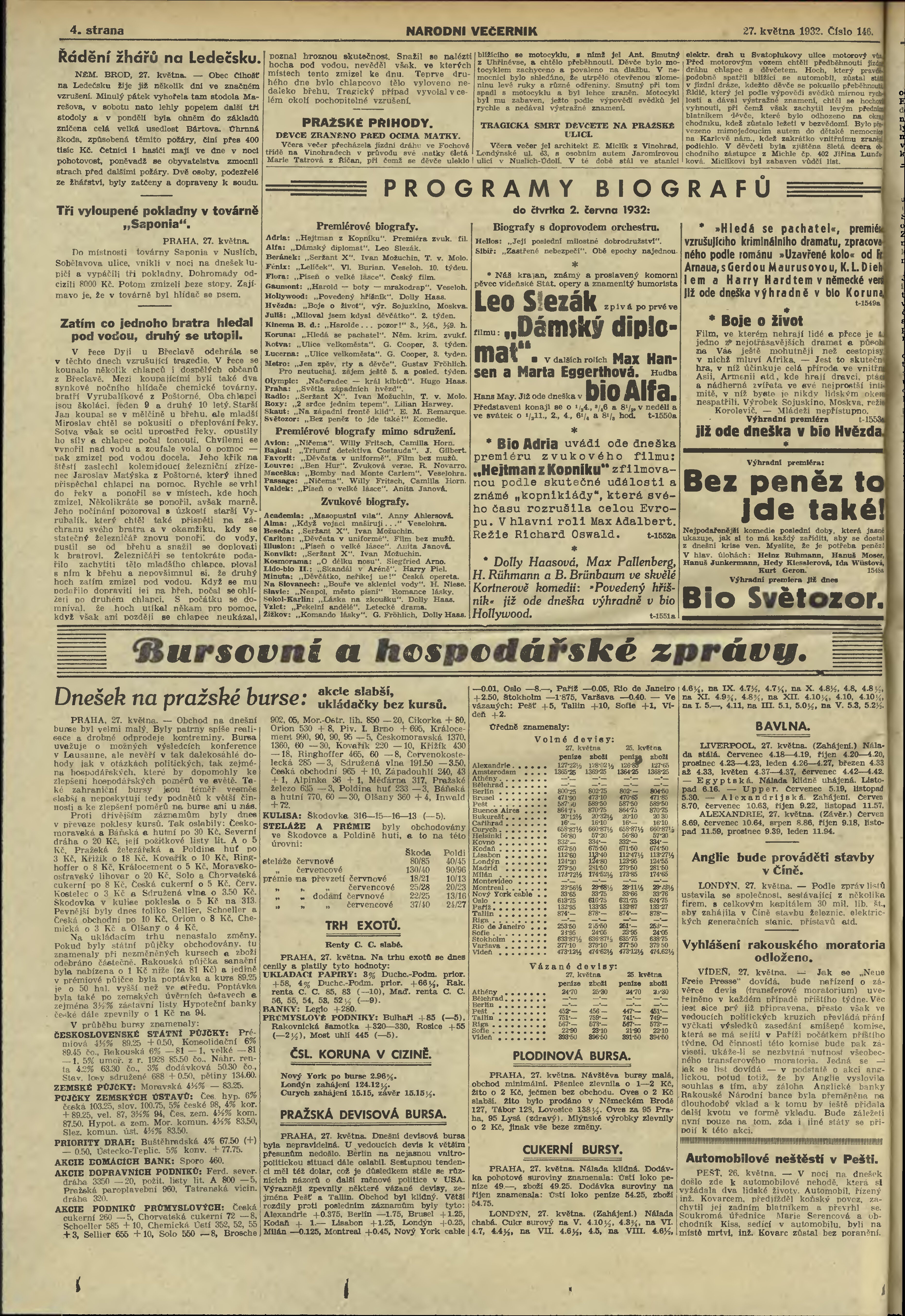* Datum vydání výtisku: 27.5.1932 Číslo výtisku: 146 Poznámky k výtisku: večerní vydání;