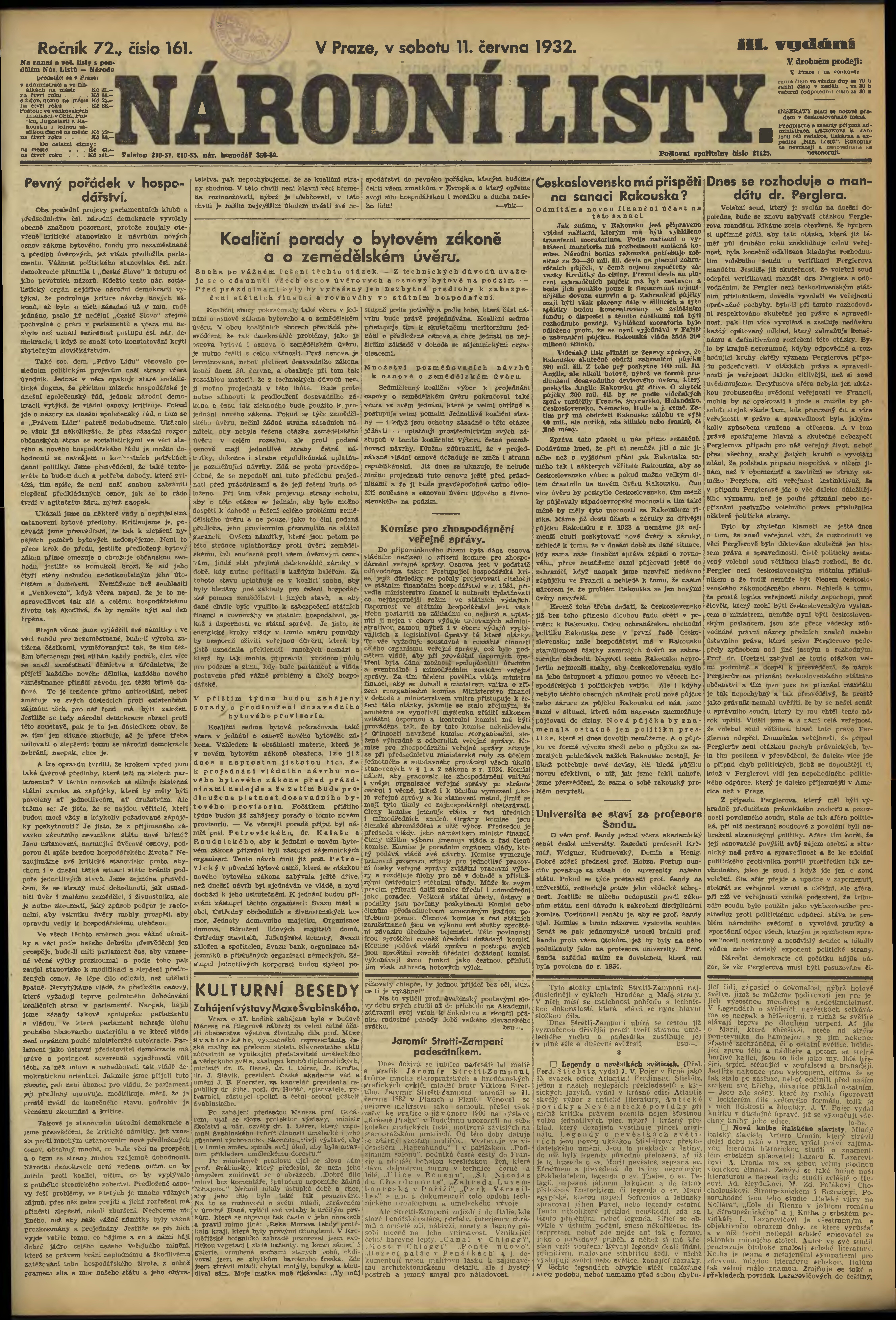 * Datum vydání výtisku: 11.6.1932 Číslo výtisku: 161