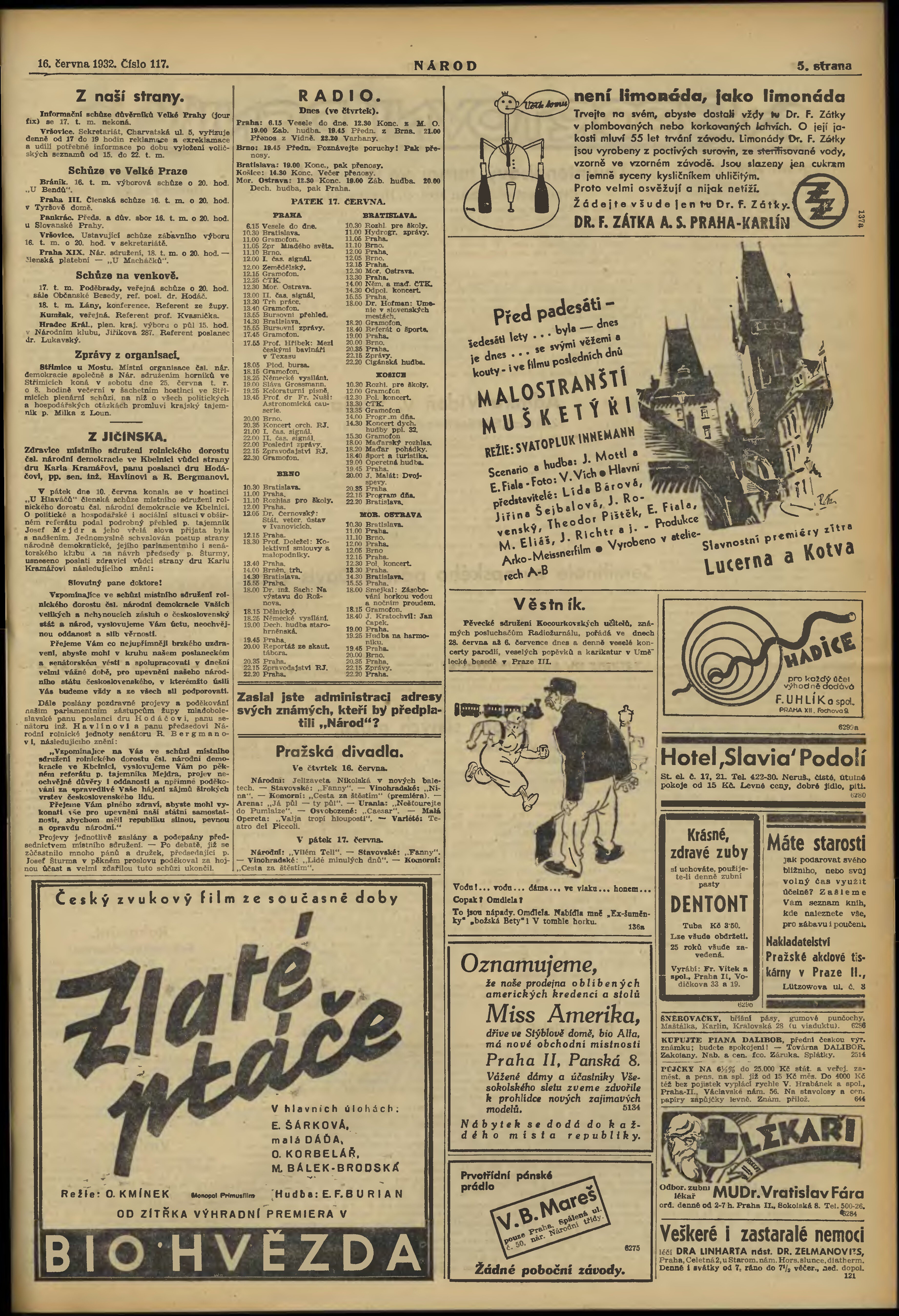 * Datum vydání výtisku: 16.6.1932 Číslo výtisku: 117