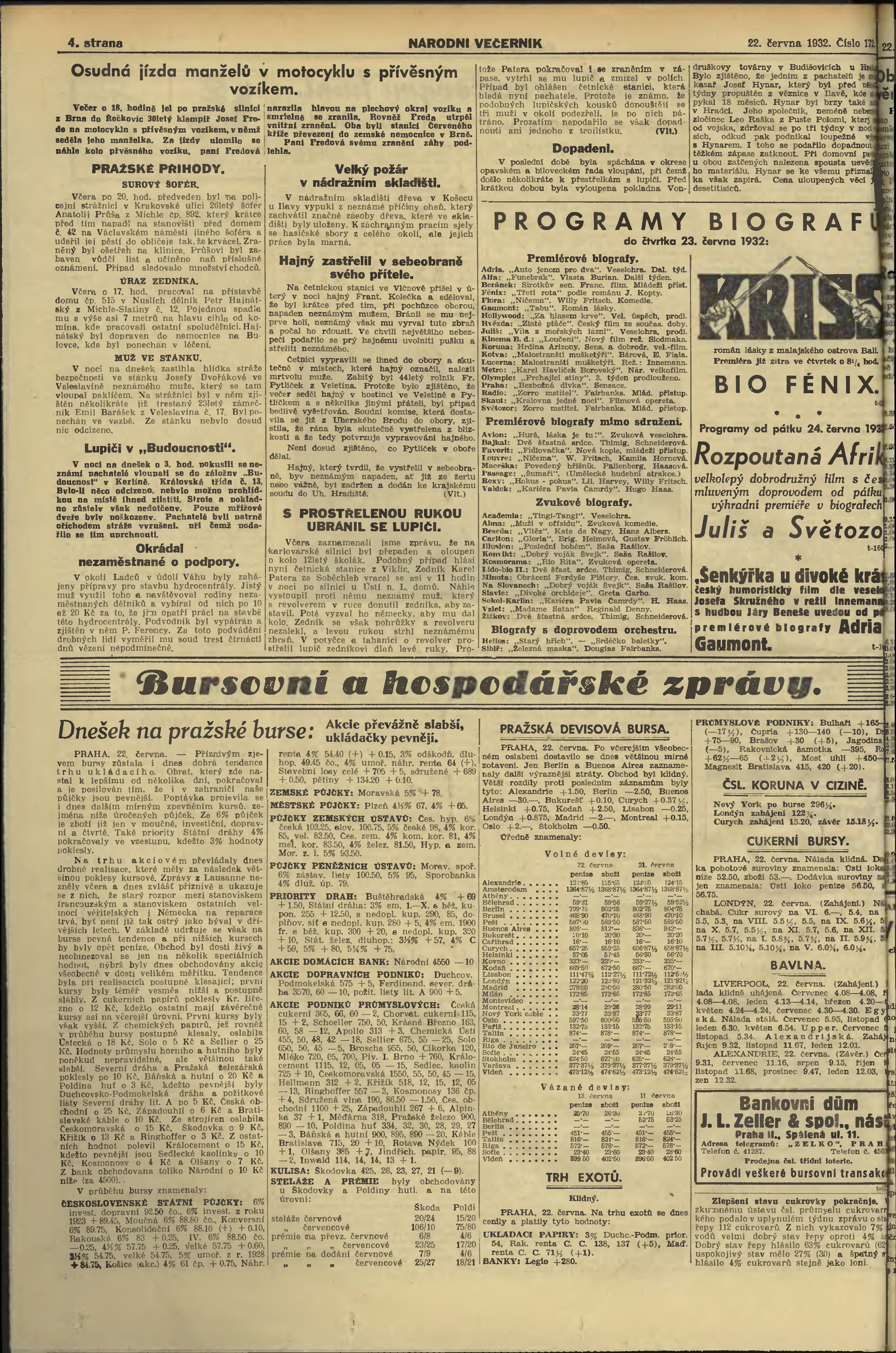 * Datum vydání výtisku: 22.6.1932 Číslo výtisku: 172 Poznámky k výtisku: večerní vydání;