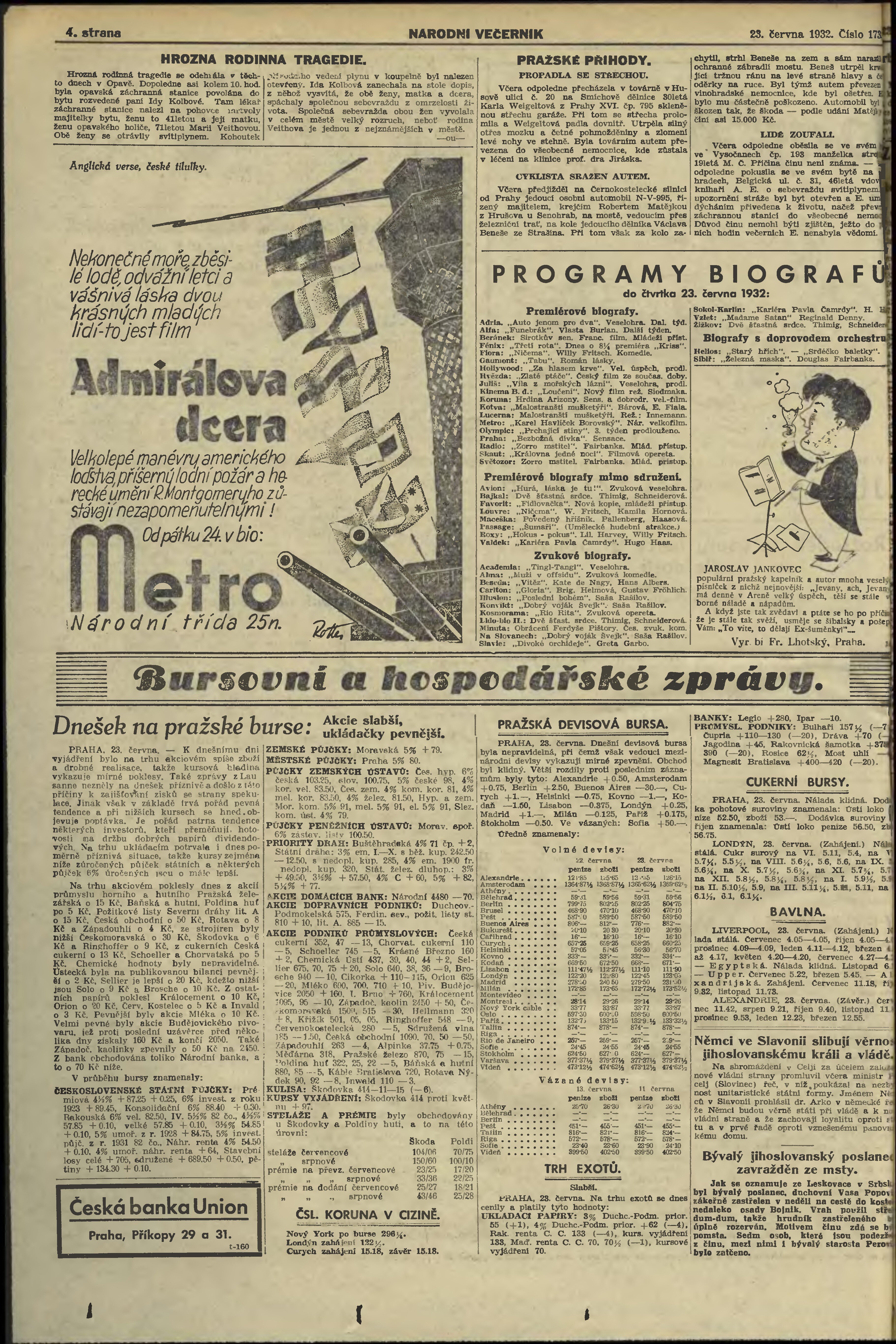 * Datum vydání výtisku: 23.6.1932 Číslo výtisku: 173 Poznámky k výtisku: večerní vydání;