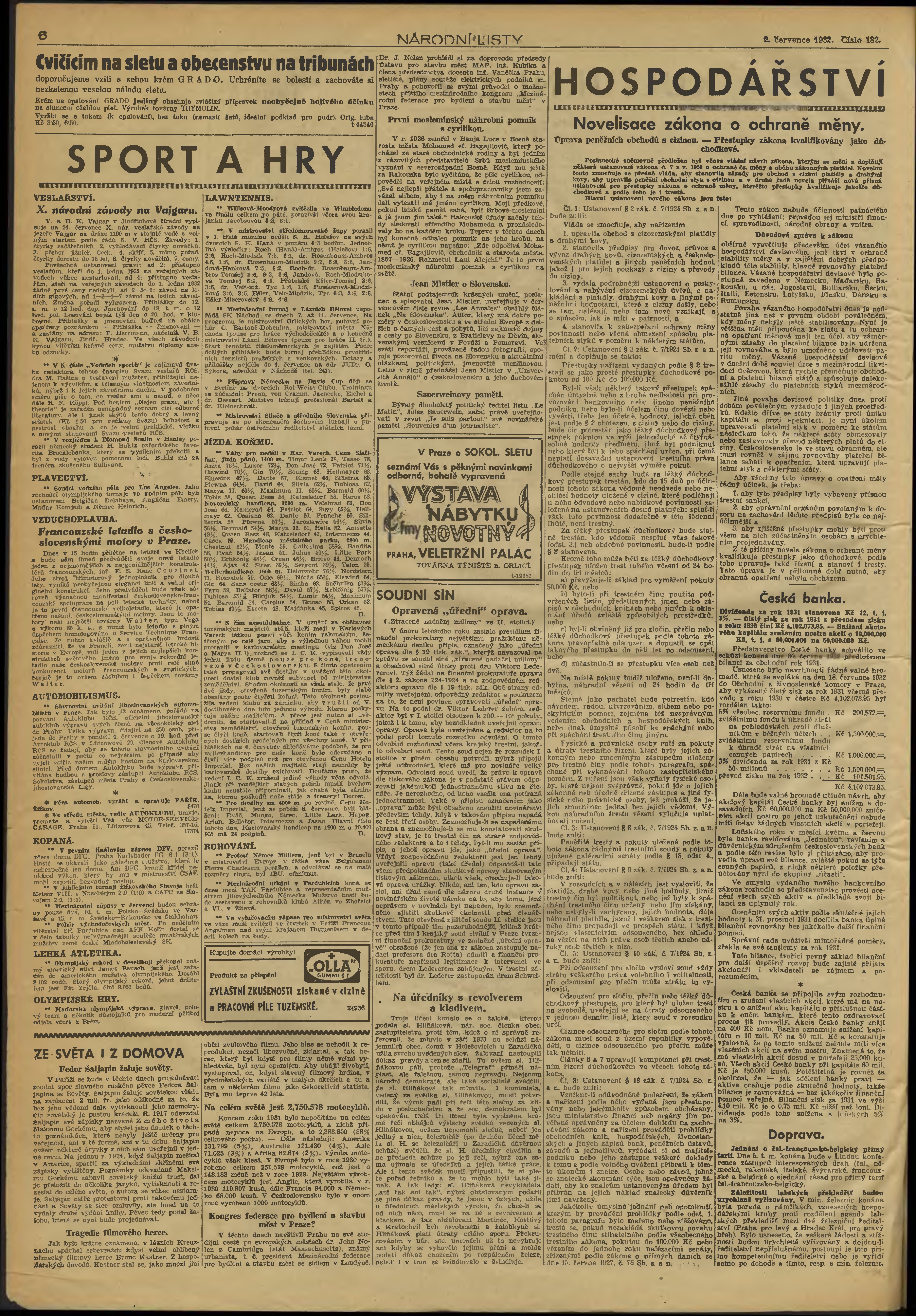 * Datum vydání výtisku: 2.7.1932 Číslo výtisku: 182