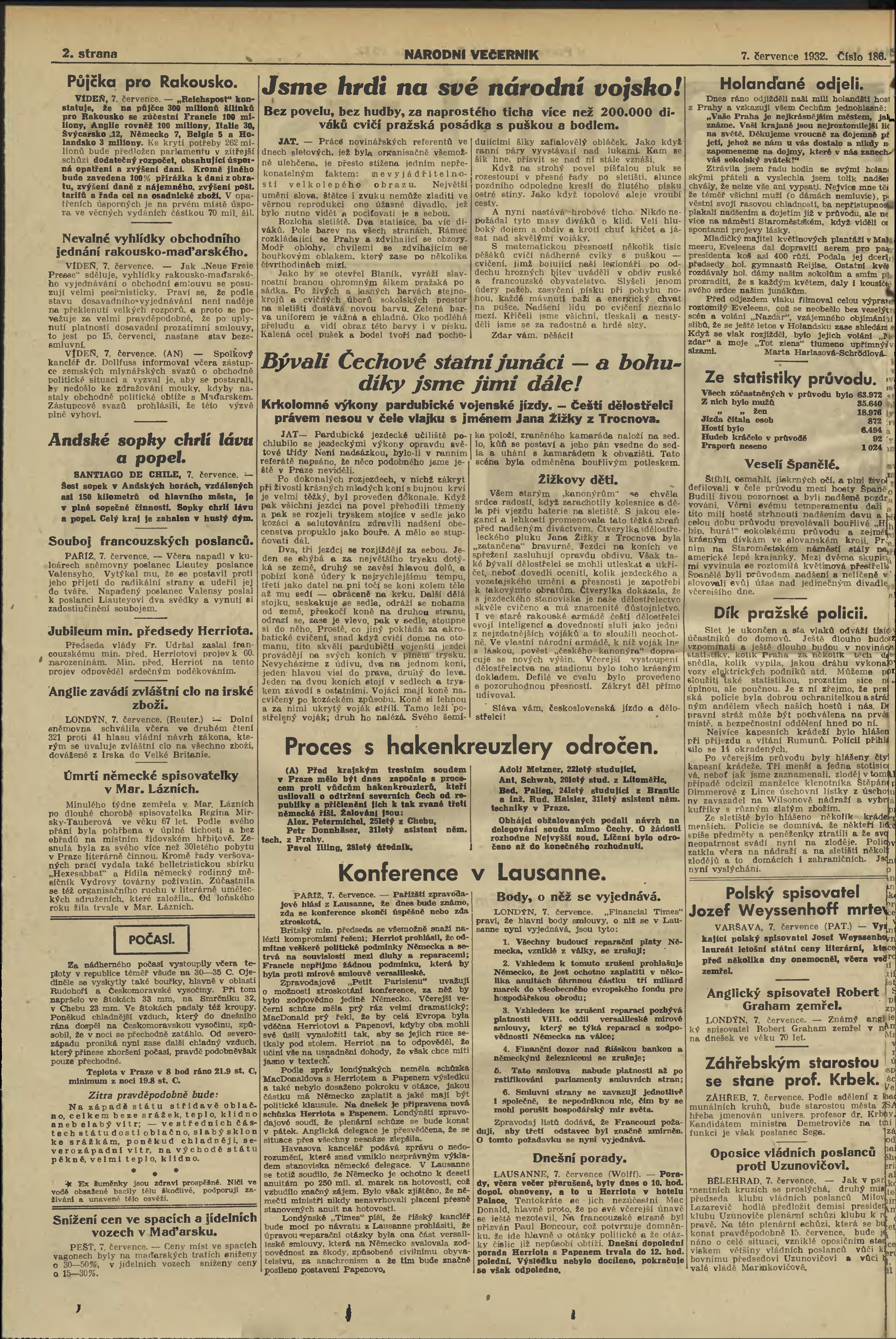 * Datum vydání výtisku: 7.7.1932 Číslo výtisku: 186 Poznámky k výtisku: večerní vydání;