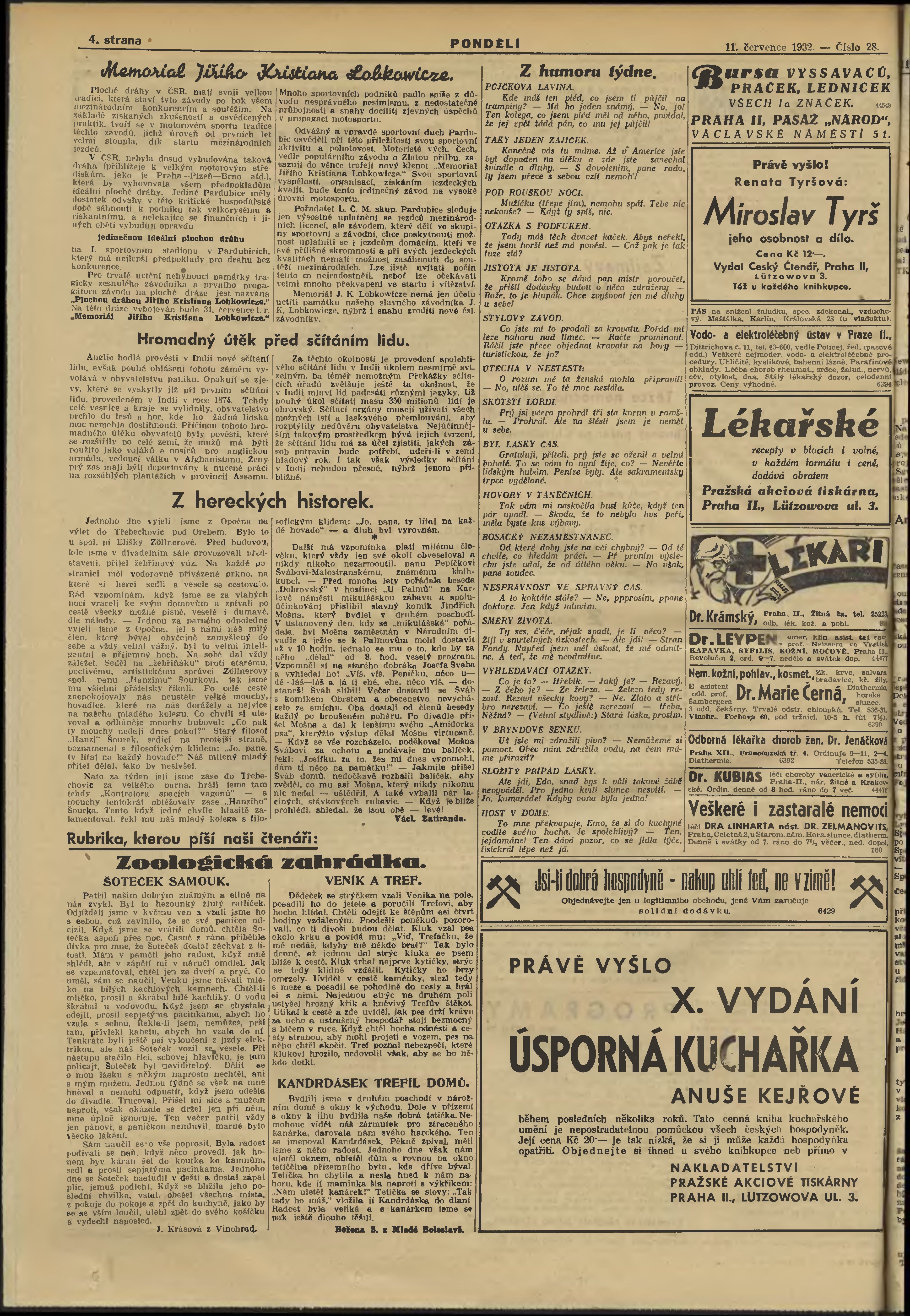* Datum vydání výtisku: 11.7.1932 Číslo výtisku: 28