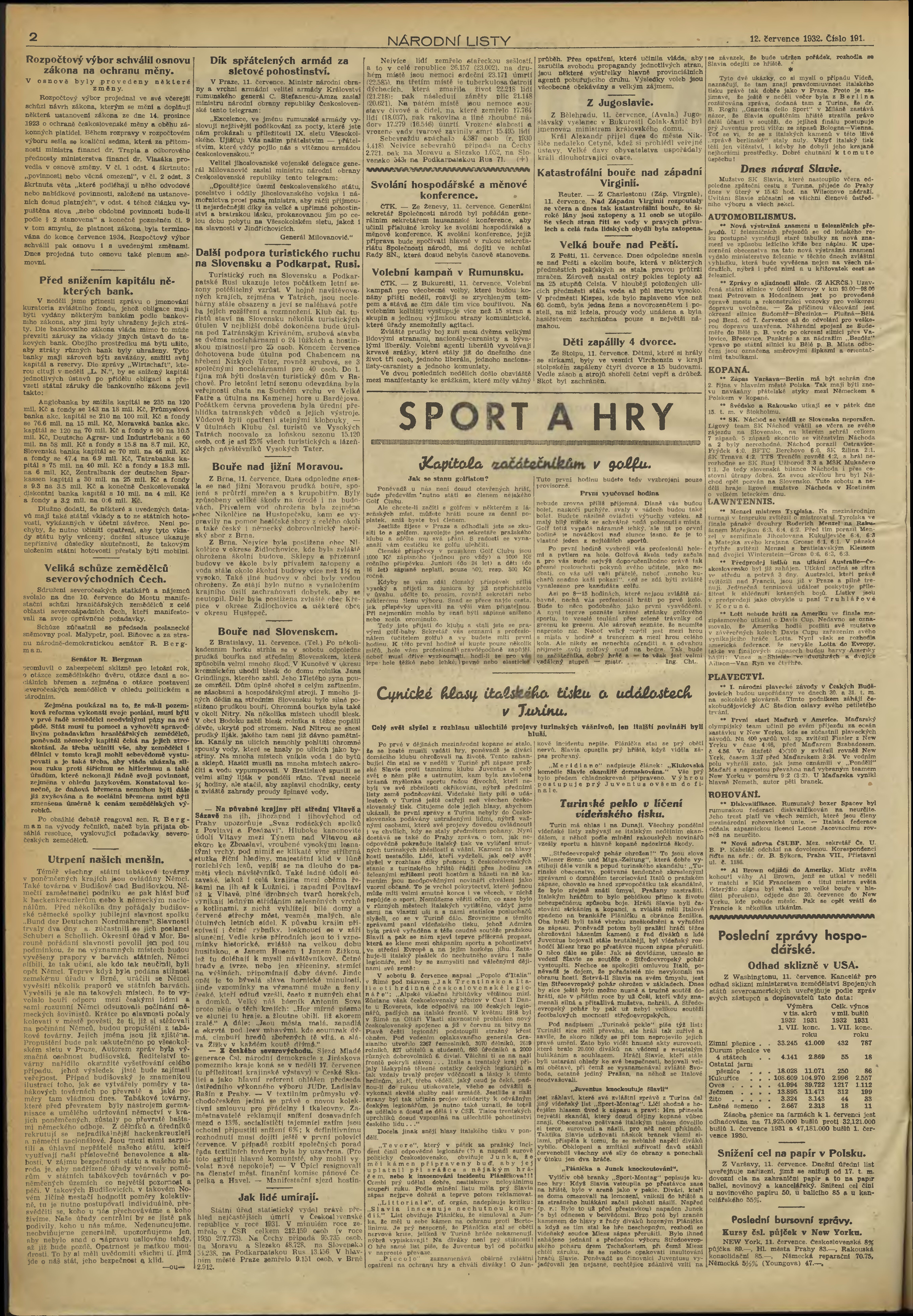 * Datum vydání výtisku: 12.7.1932 Číslo výtisku: 191