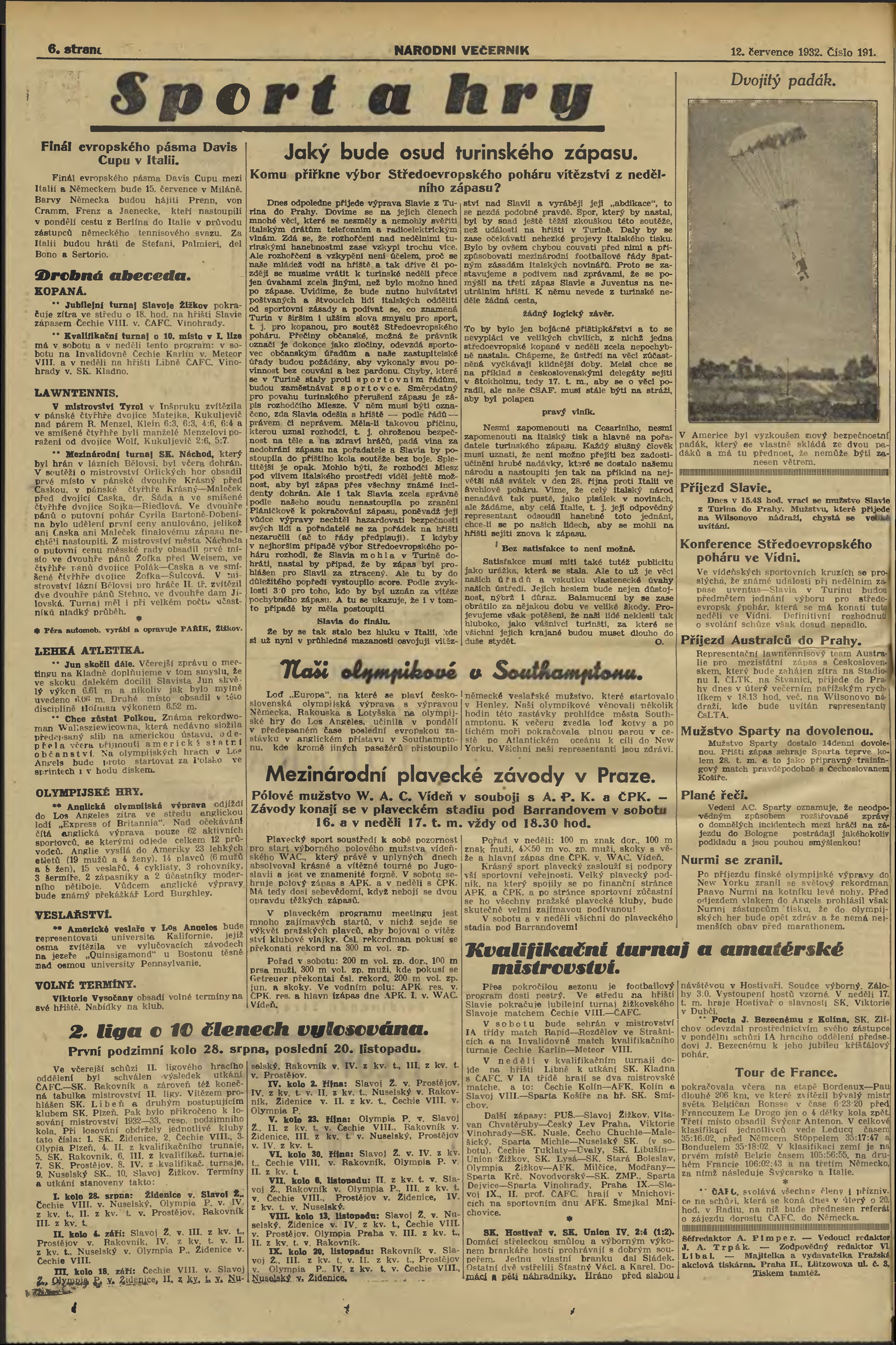 * Datum vydání výtisku: 12.7.1932 Číslo výtisku: 191 Poznámky k výtisku: večerní vydání;