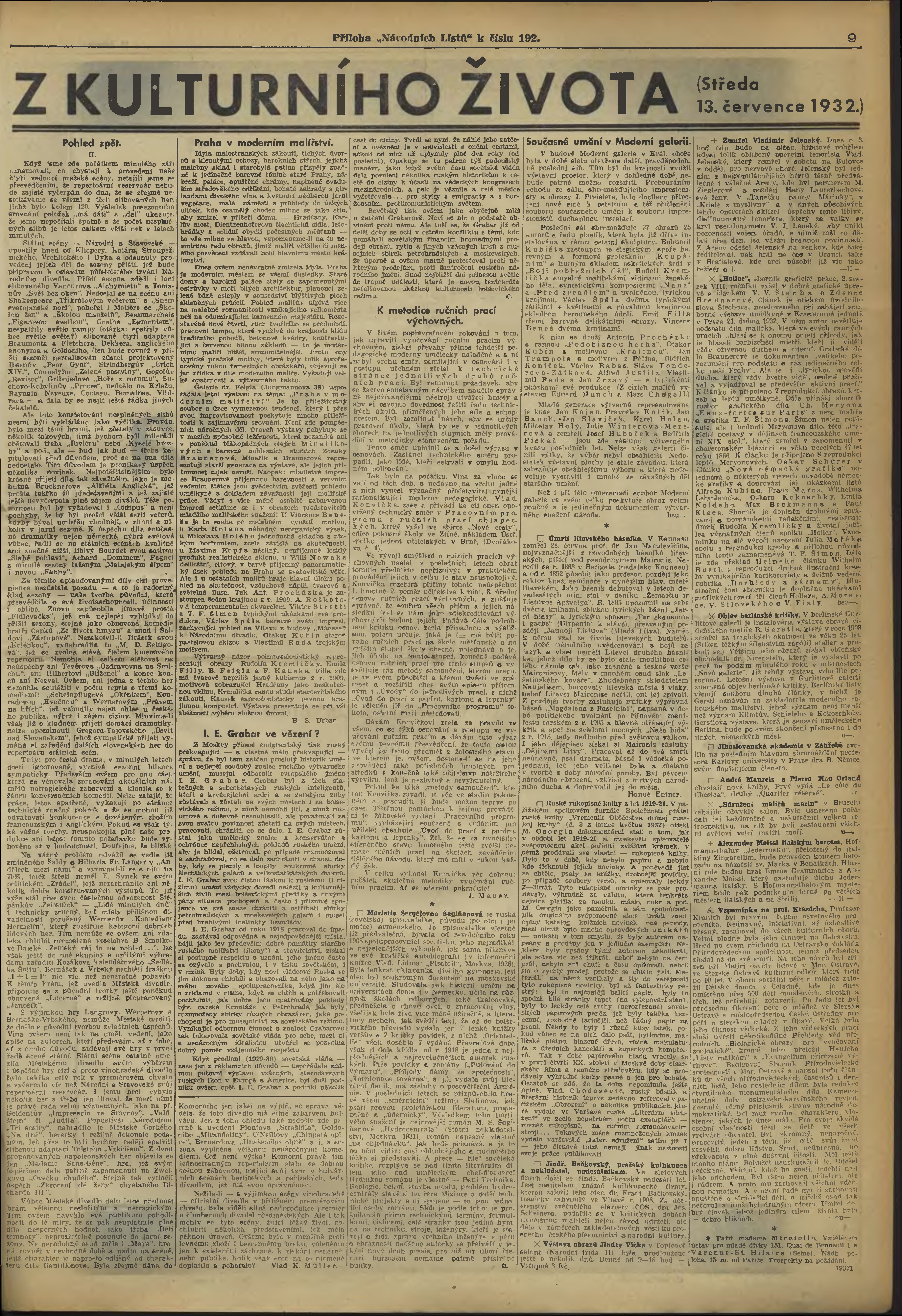 * Datum vydání výtisku: 13.7.1932 Číslo výtisku: 192 Typ výtisku: příloha