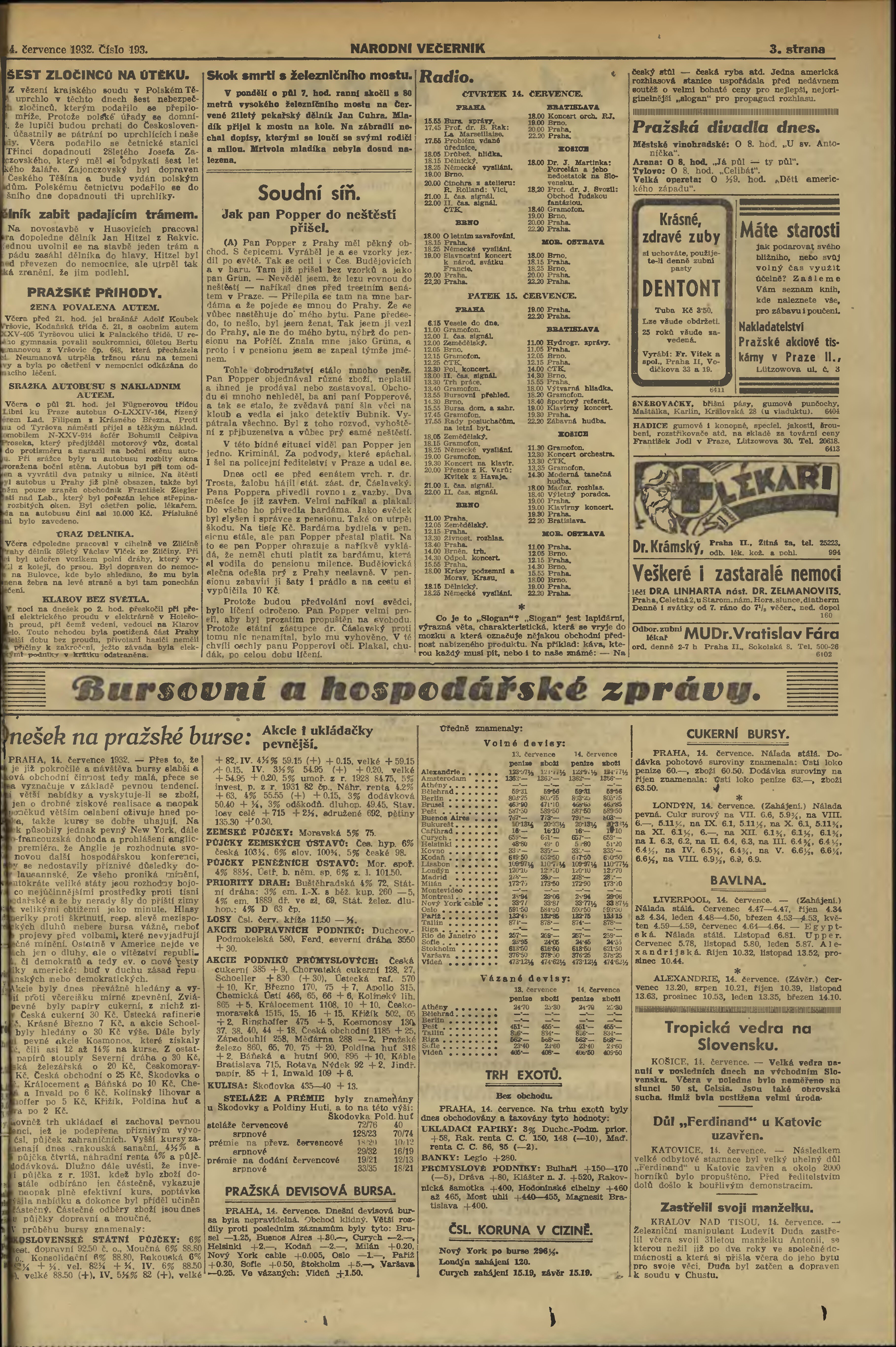 * Datum vydání výtisku: 14.7.1932 Číslo výtisku: 193 Poznámky k výtisku: večerní vydání;