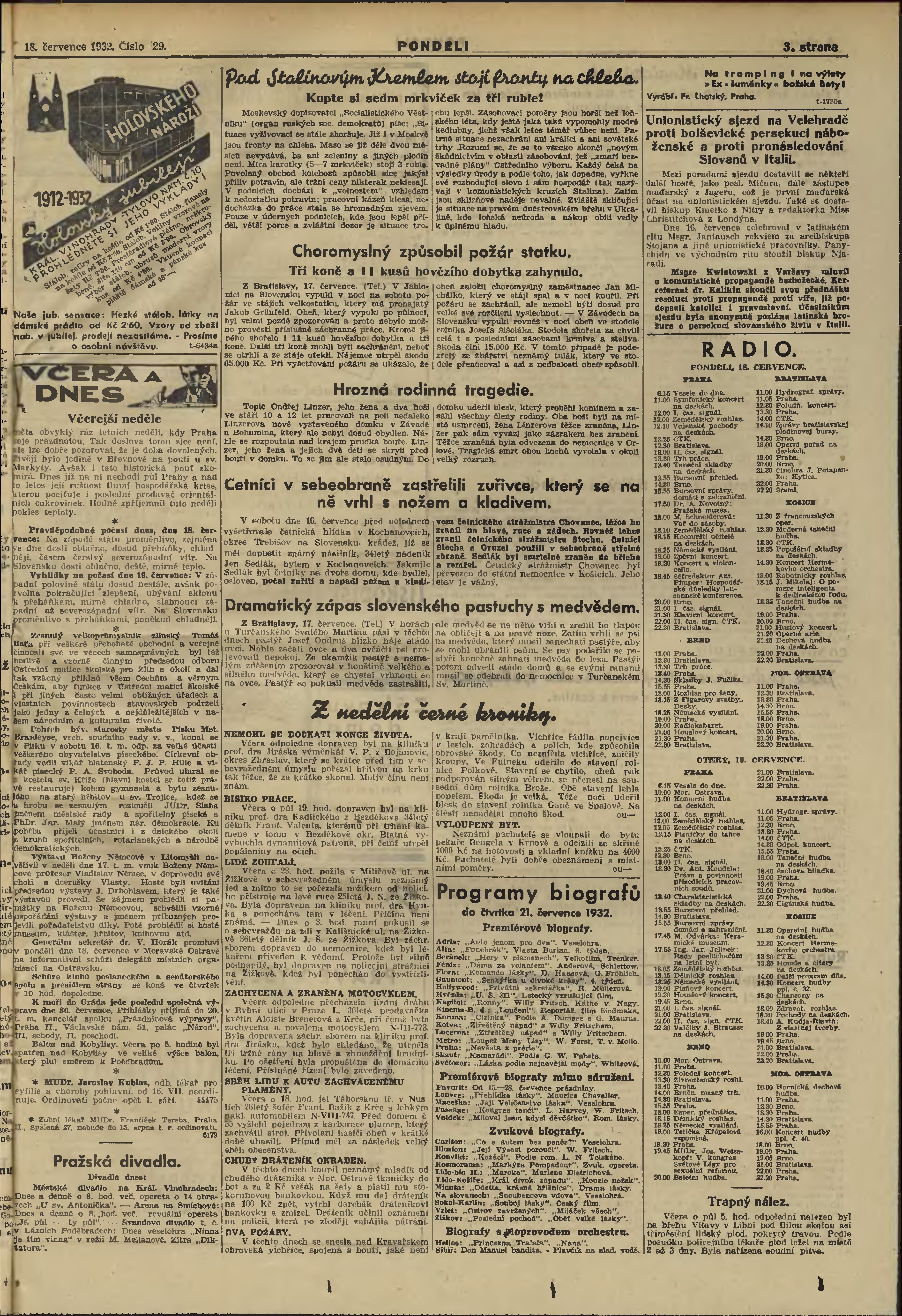 * Datum vydání výtisku: 18.7.1932 Číslo výtisku: 29
