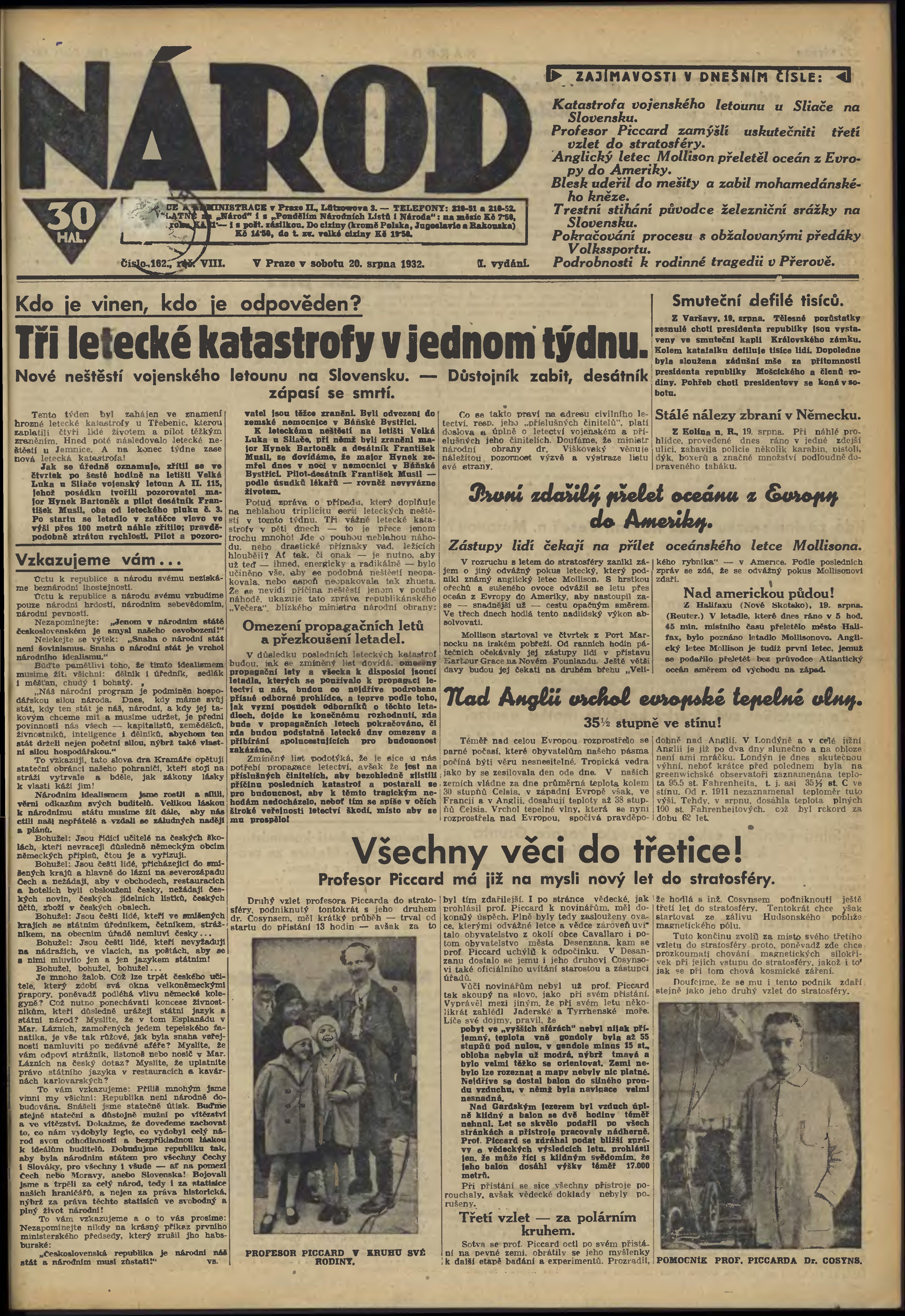 * Datum vydání výtisku: 20.8.1932 Číslo výtisku: 162