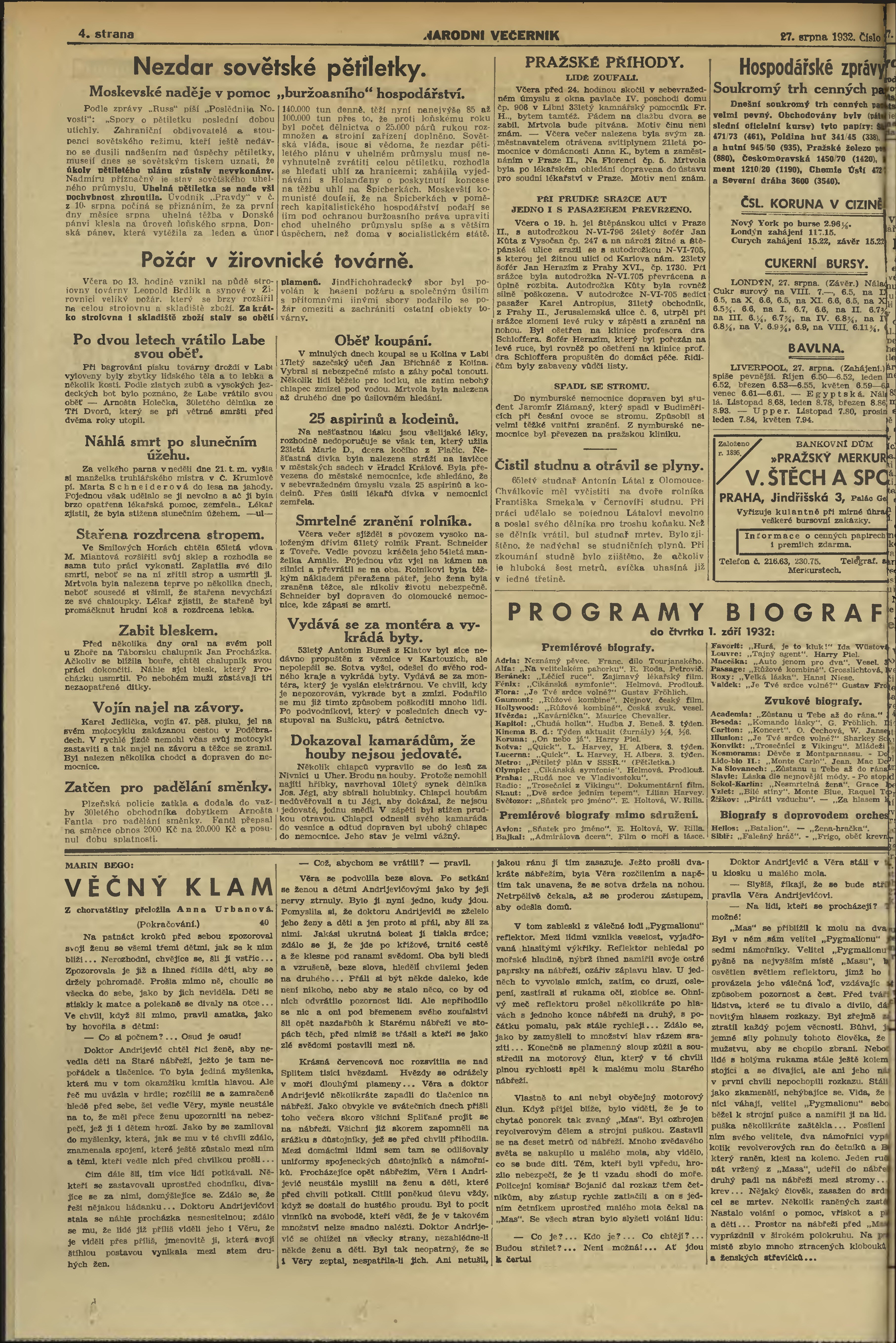 * Datum vydání výtisku: 27.8.1932 Číslo výtisku: 236 Poznámky k výtisku: večerní vydání;