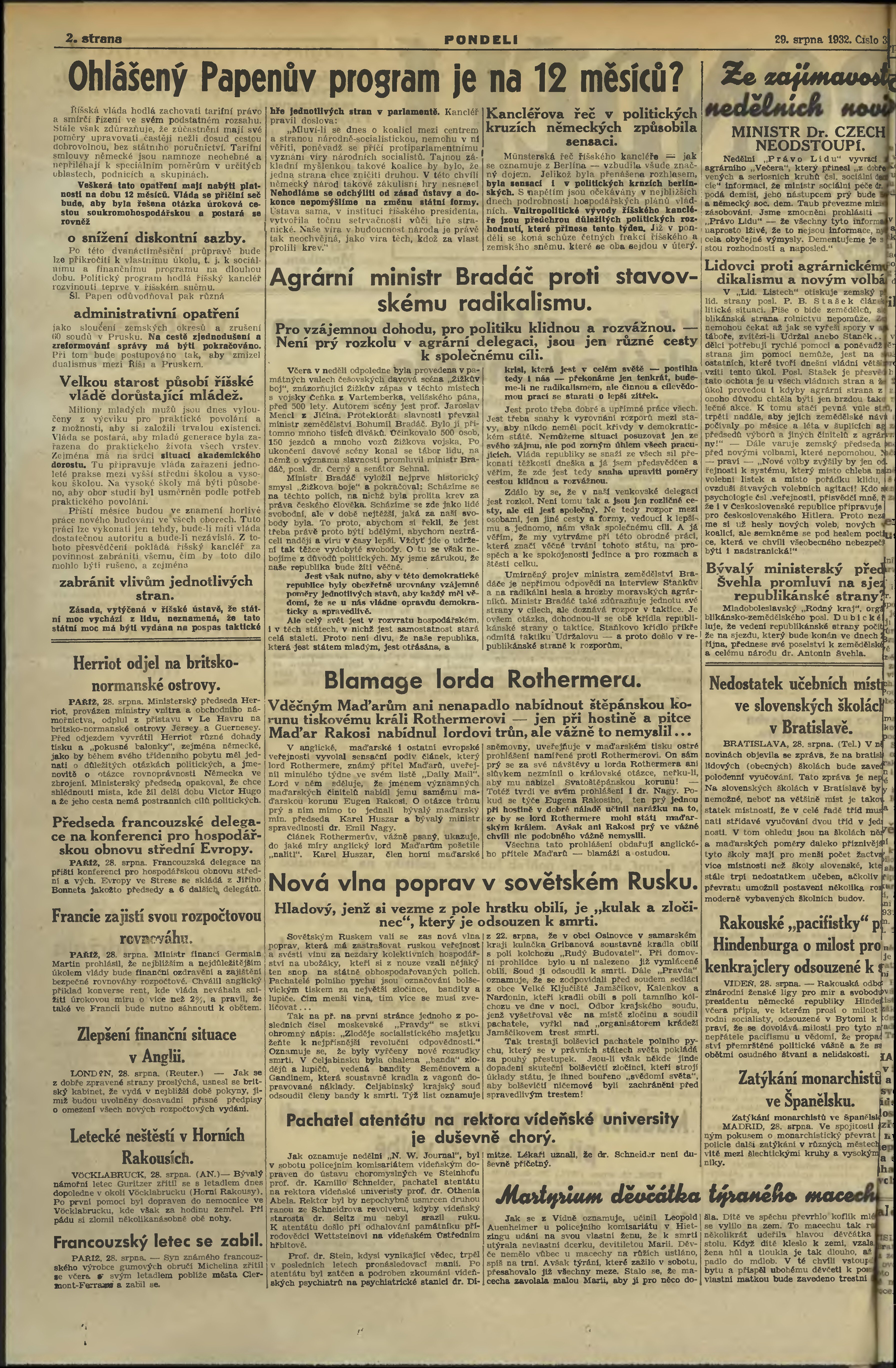 * Datum vydání výtisku: 29.8.1932 Číslo výtisku: 35