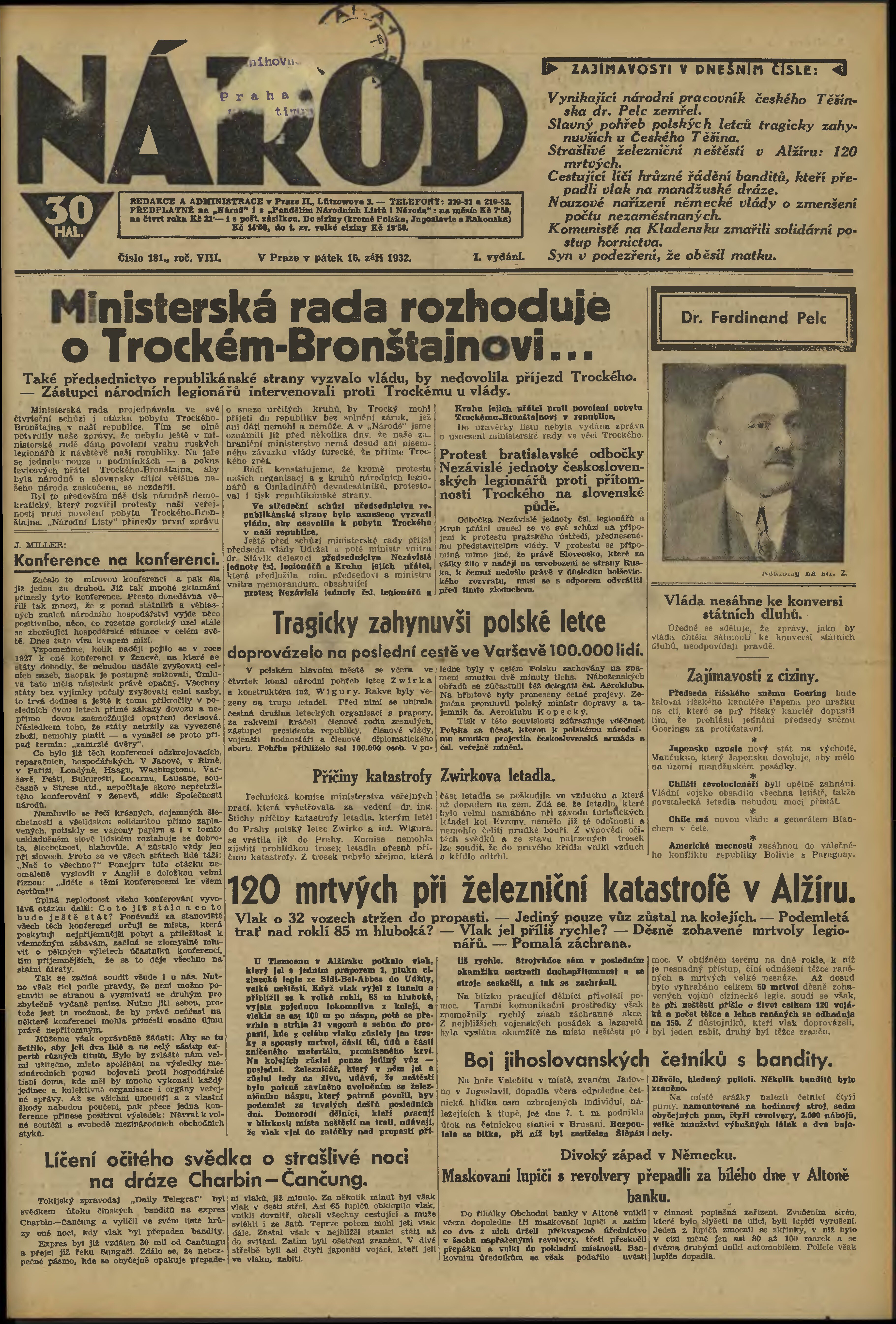 * Datum vydání výtisku: 16.9.1932 Číslo výtisku: 181