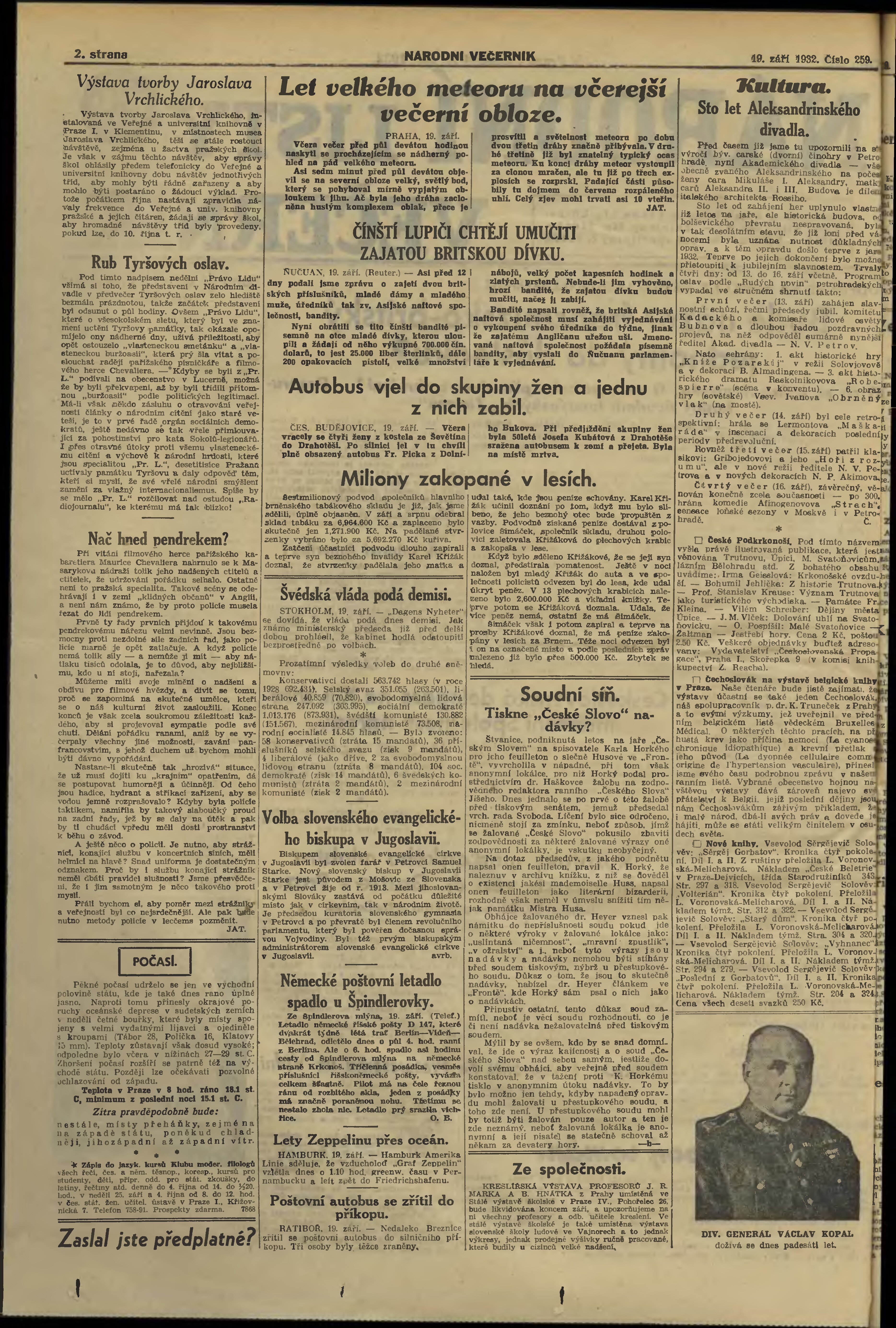 * Datum vydání výtisku: 19.9.1932 Číslo výtisku: 259 Poznámky k výtisku: večerní vydání;
