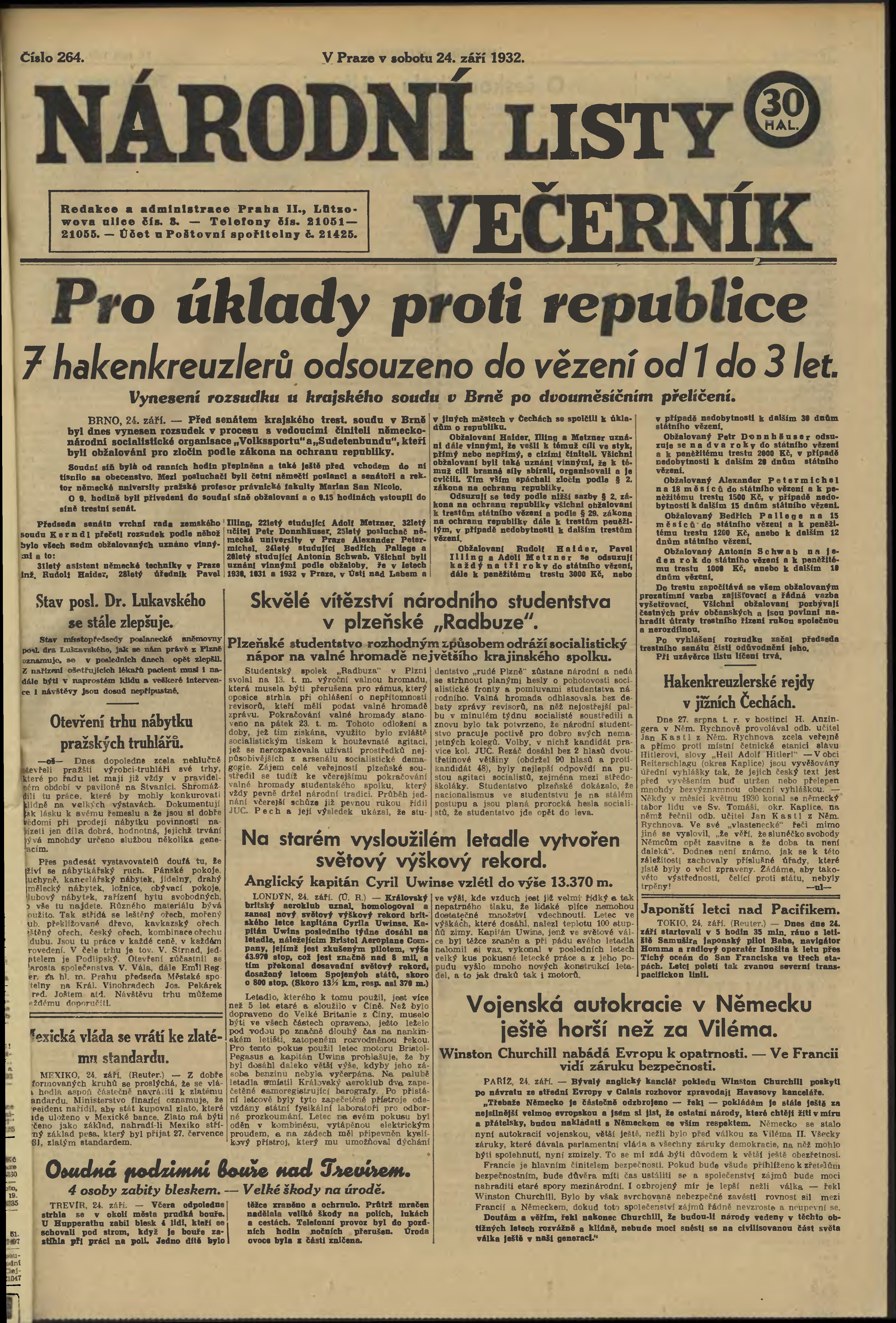 * Datum vydání výtisku: 24.9.1932 Číslo výtisku: 264 Poznámky k výtisku: večerní vydání;
