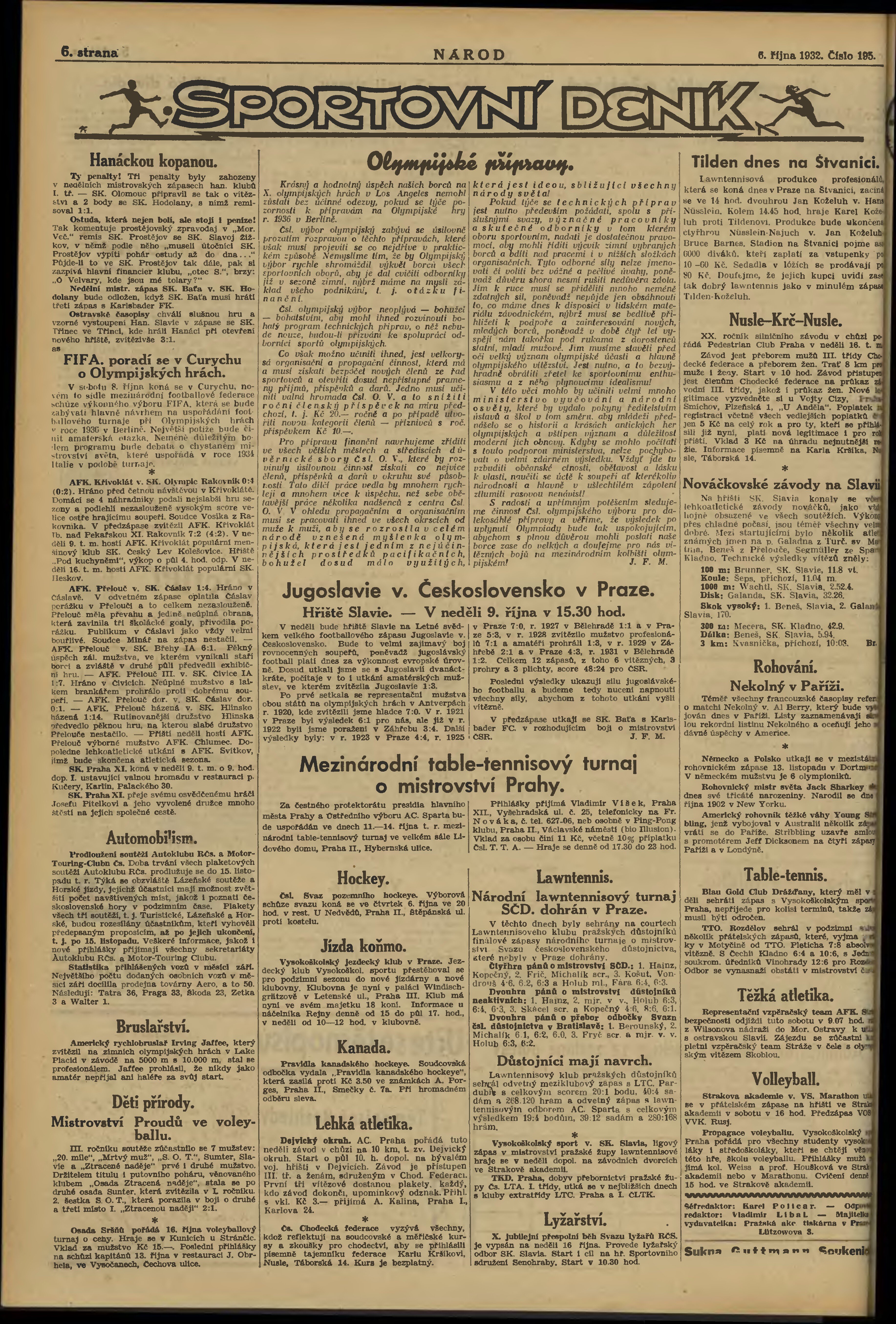 * Datum vydání výtisku: 6.10.1932 Číslo výtisku: 195