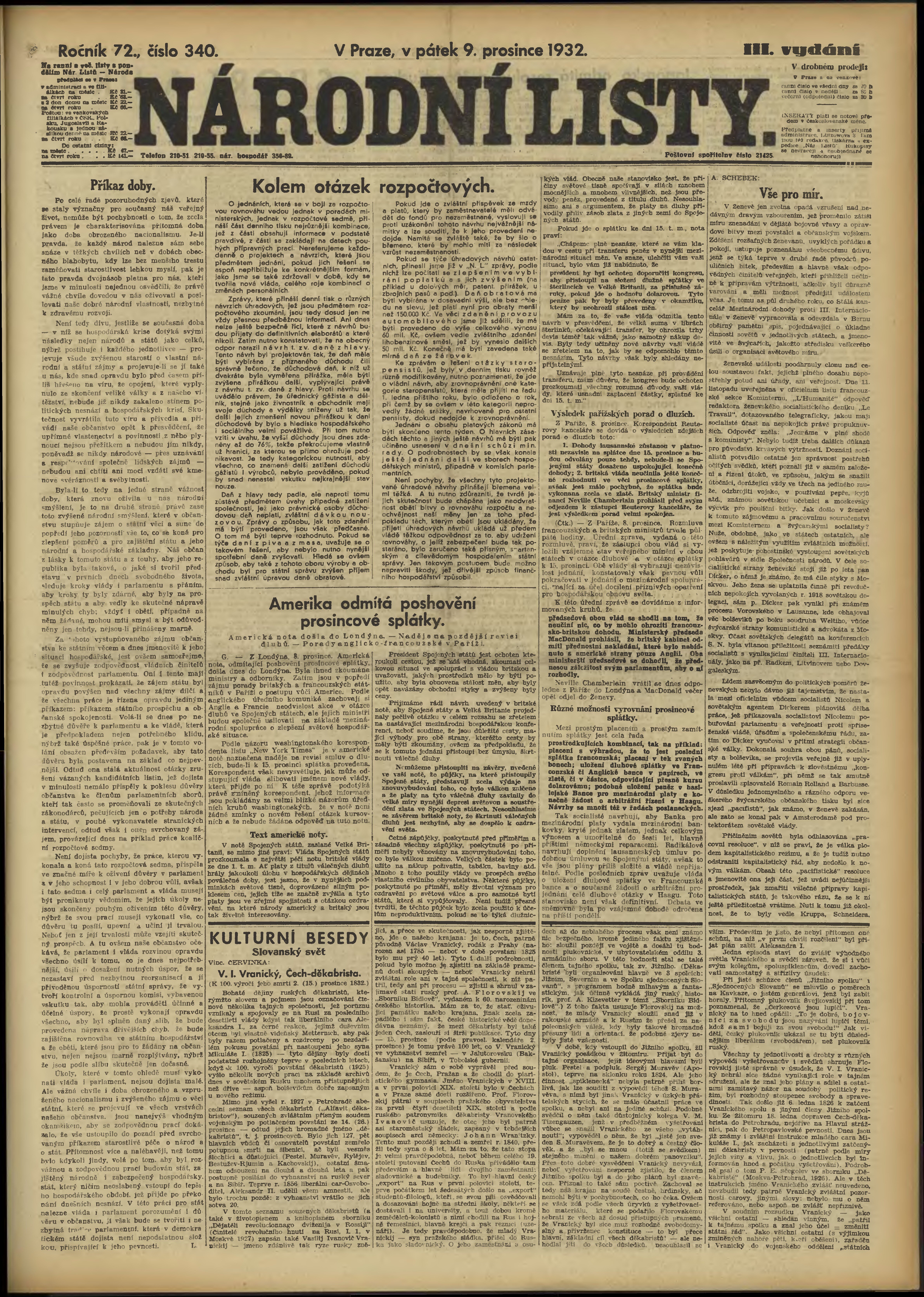 * Datum vydání výtisku: 9.12.1932 Číslo výtisku: 340 Poznámky k výtisku: obsahuje přílohu Knihy a čtenáři;