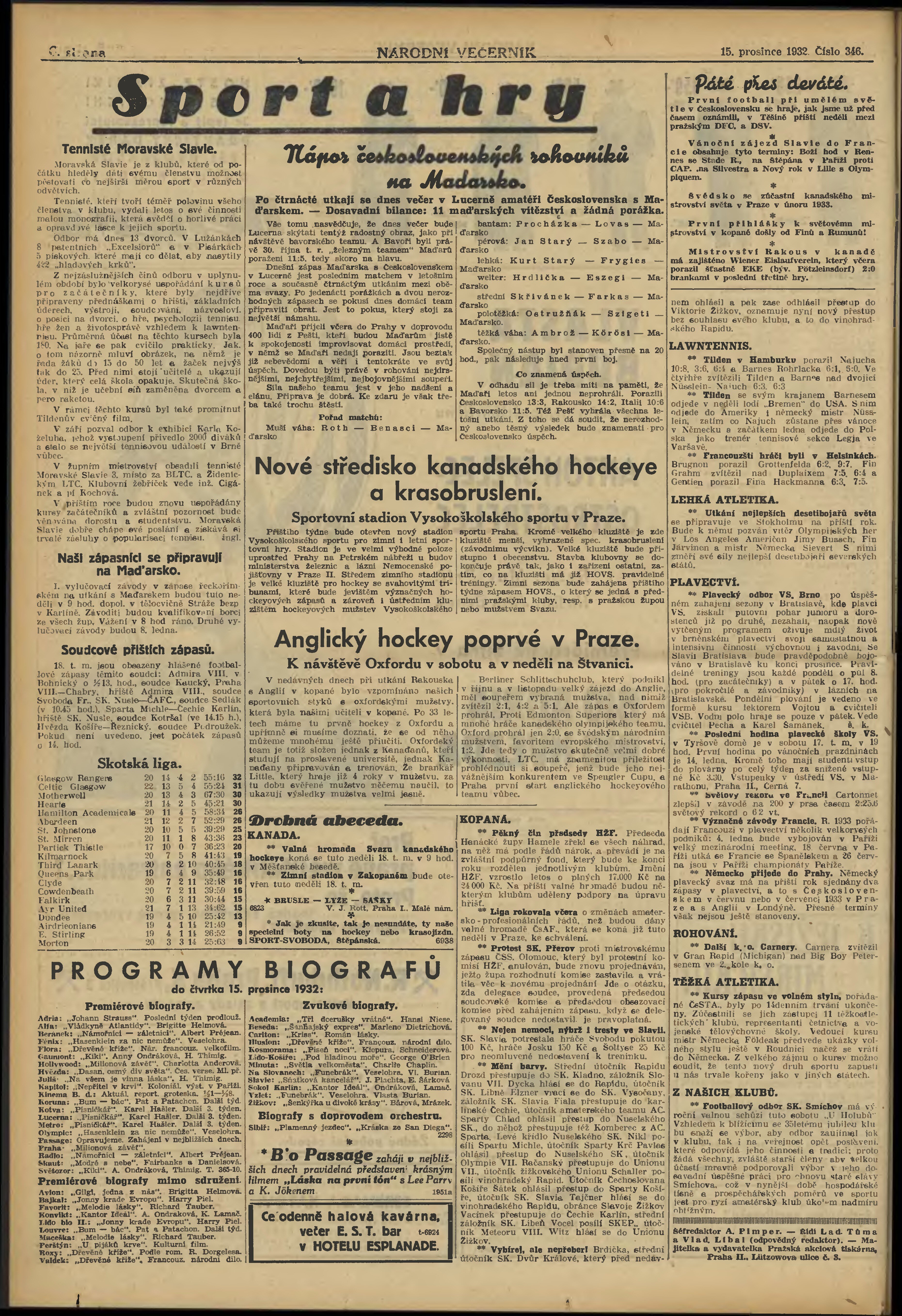 * Datum vydání výtisku: 15.12.1932 Číslo výtisku: 346 Poznámky k výtisku: večerní vydání;