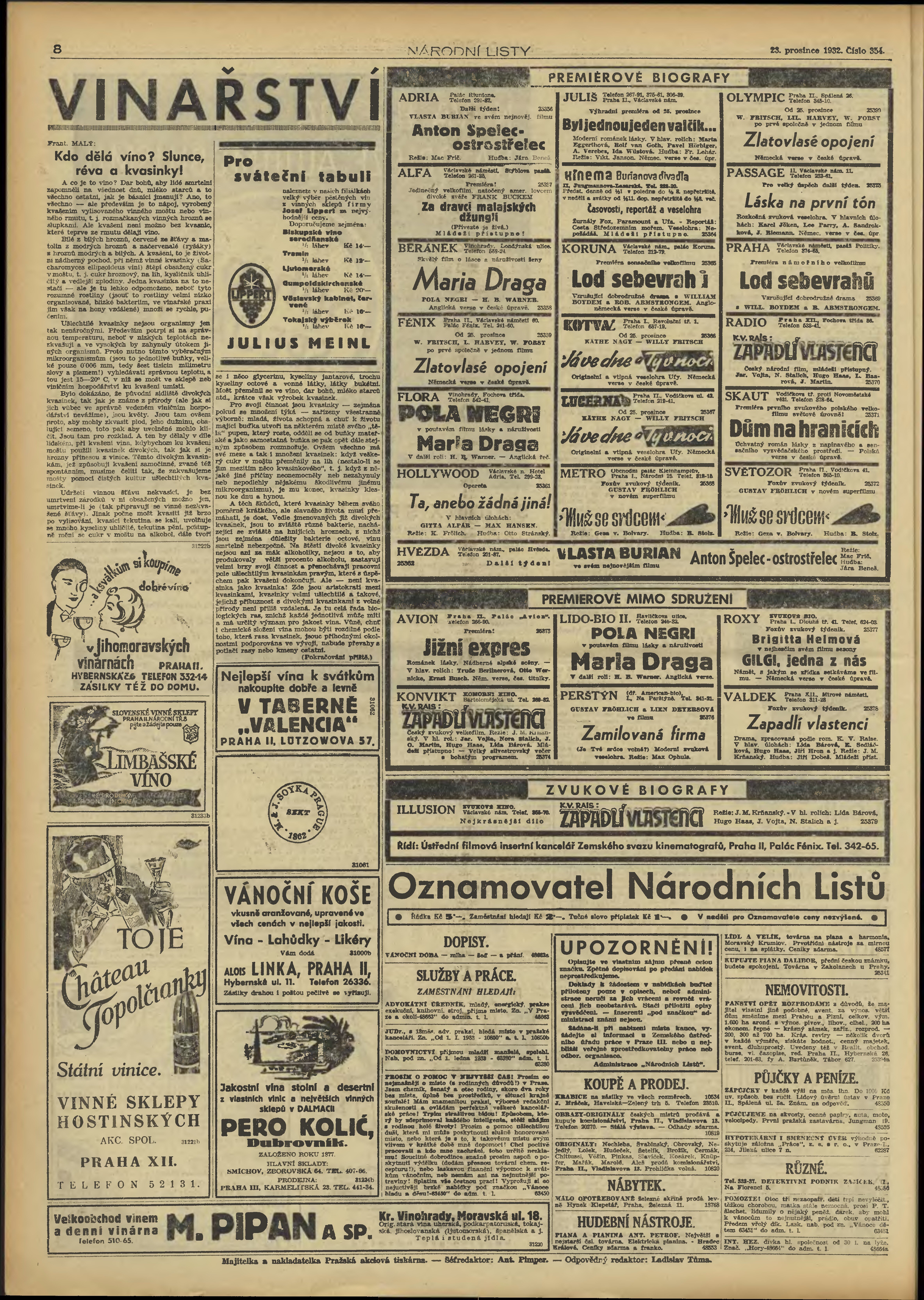 * Datum vydání výtisku: 23.12.1932 Číslo výtisku: 354 Poznámky k výtisku: obsahuje přílohu Knihy a čtenáři;