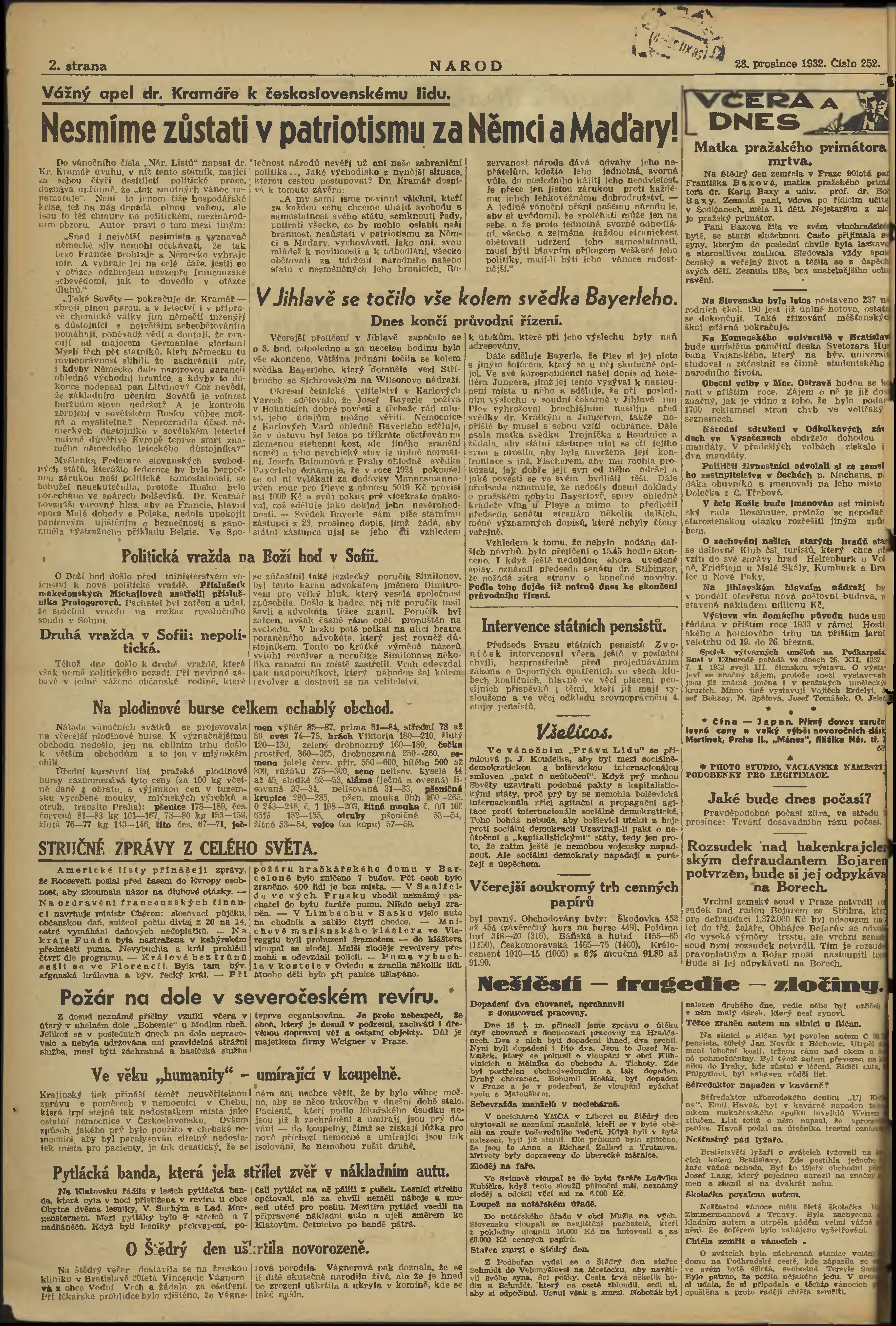 * Datum vydání výtisku: 28.12.1932 Číslo výtisku: 252