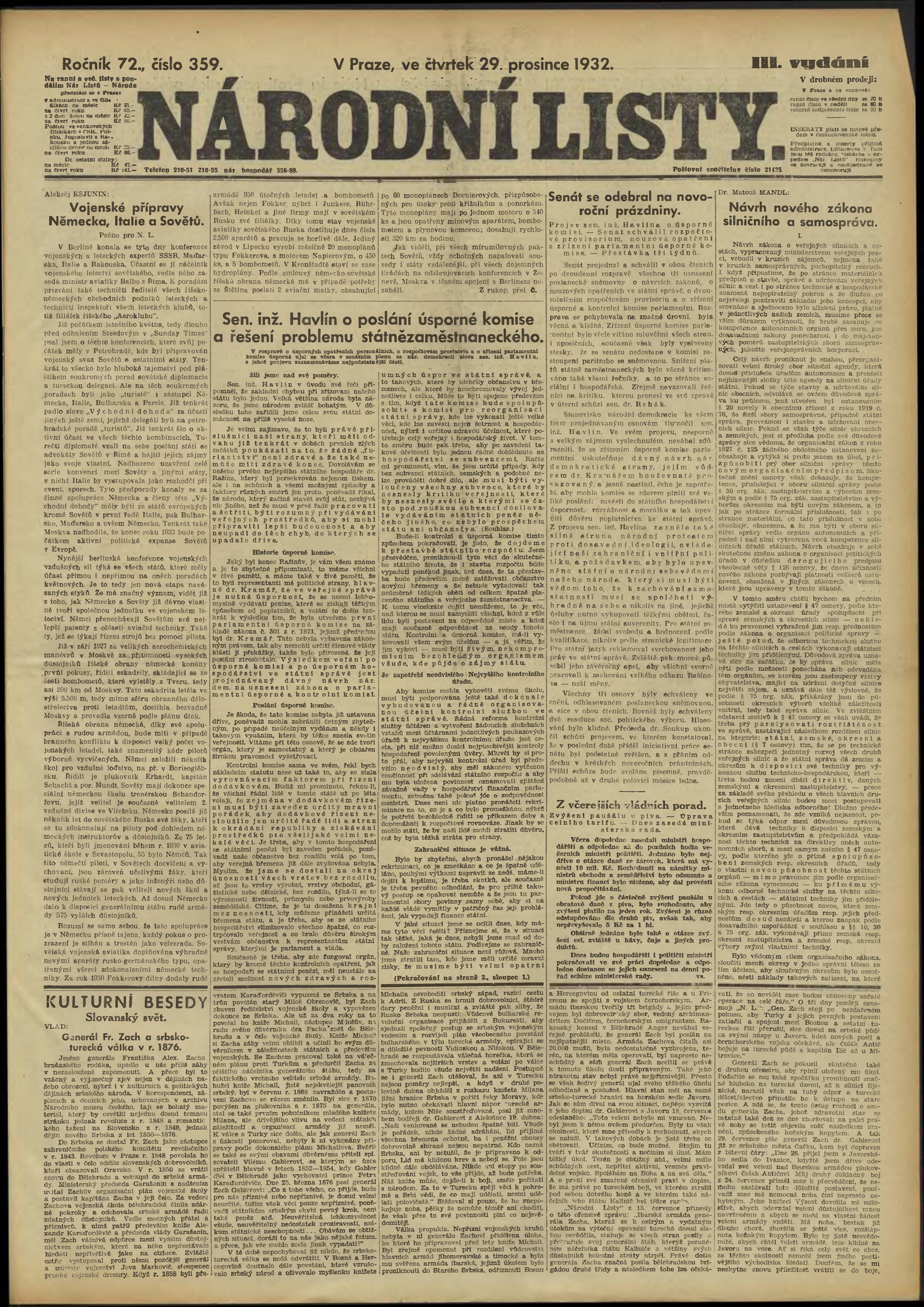 * Datum vydání výtisku: 29.12.1932 Číslo výtisku: 359
