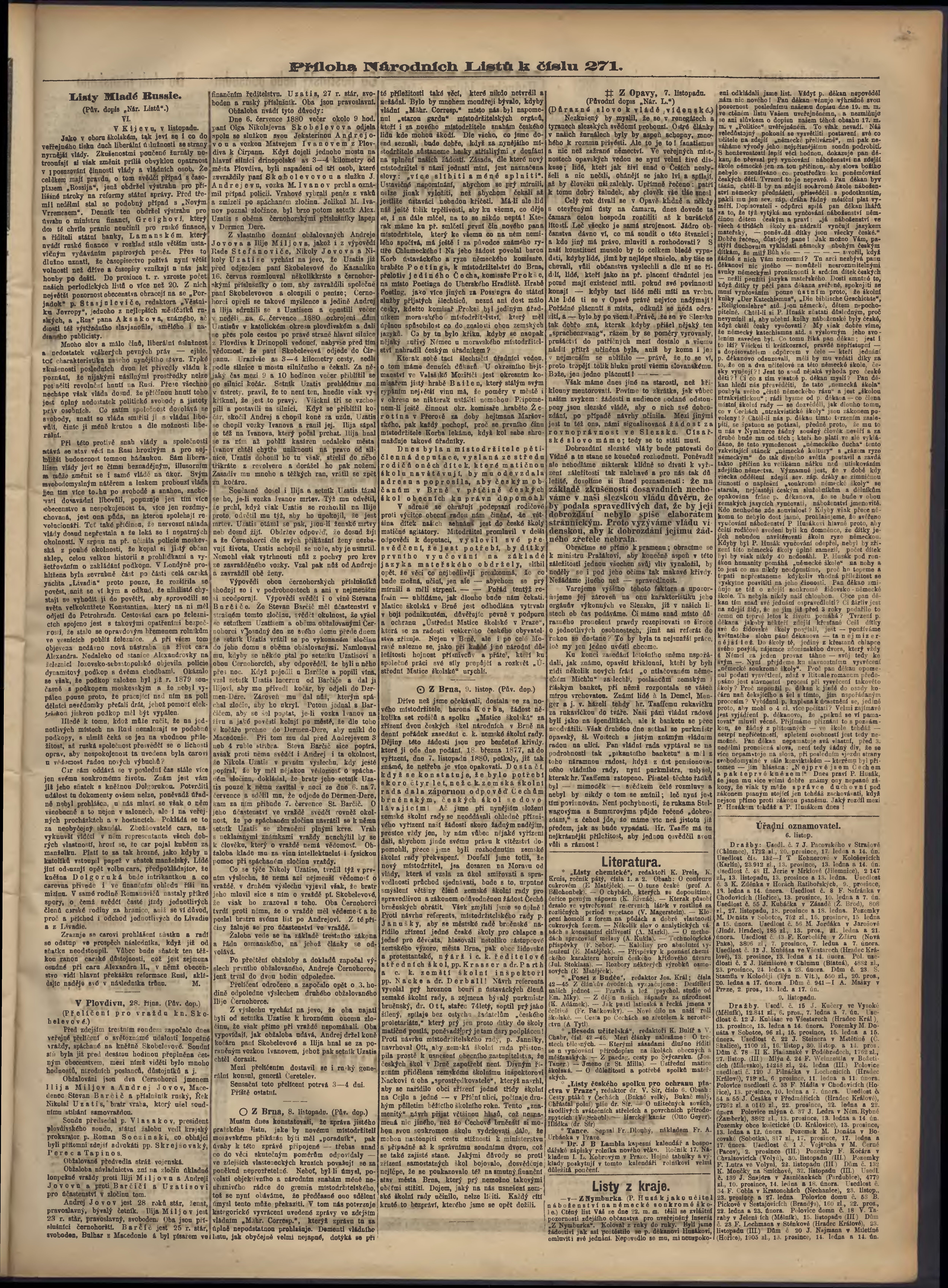 * Datum vydání výtisku: 11.11.1880 Číslo výtisku: 271 Typ výtisku: příloha