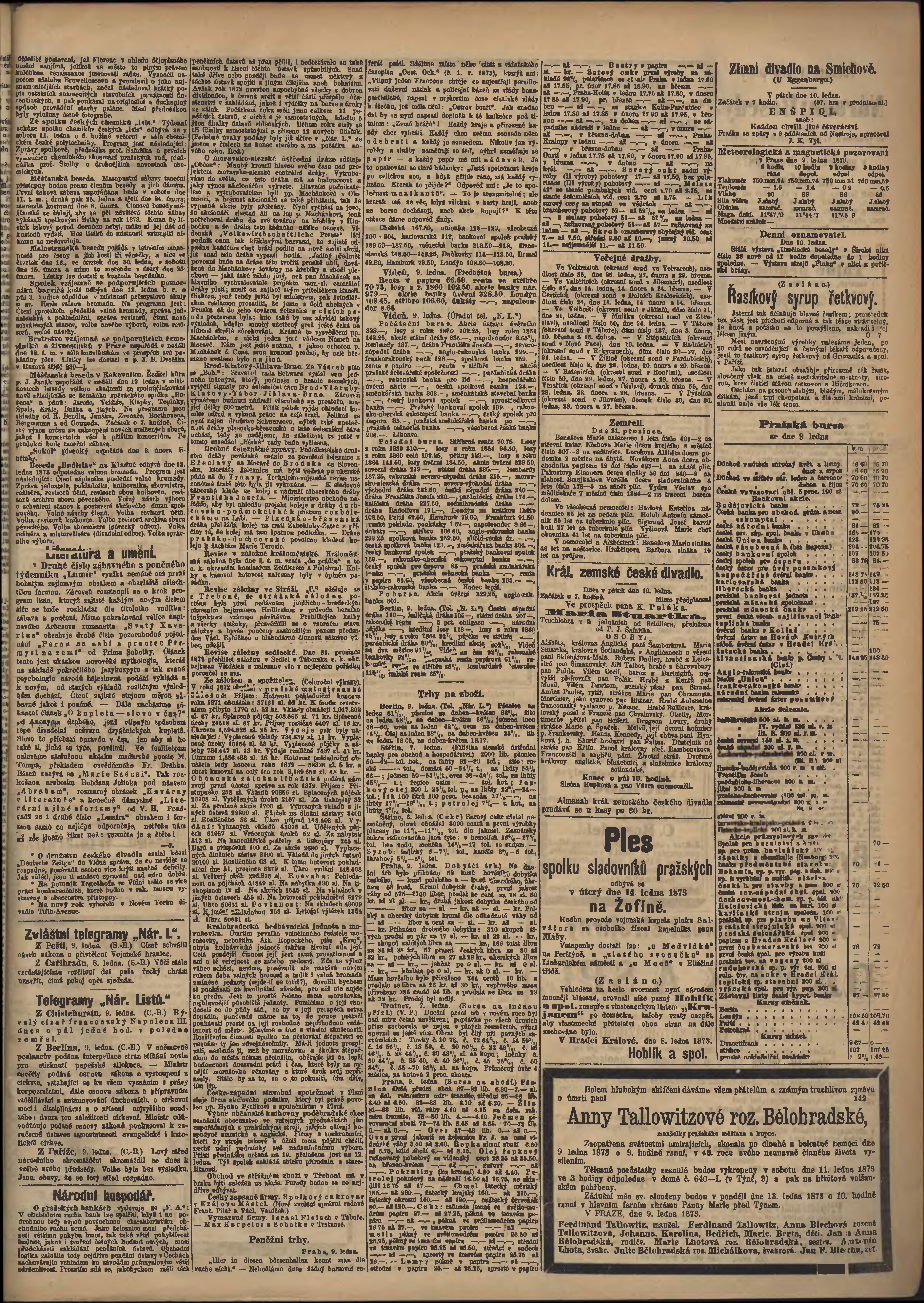 * Datum vydání výtisku: 10.1.1873 Číslo výtisku: 8