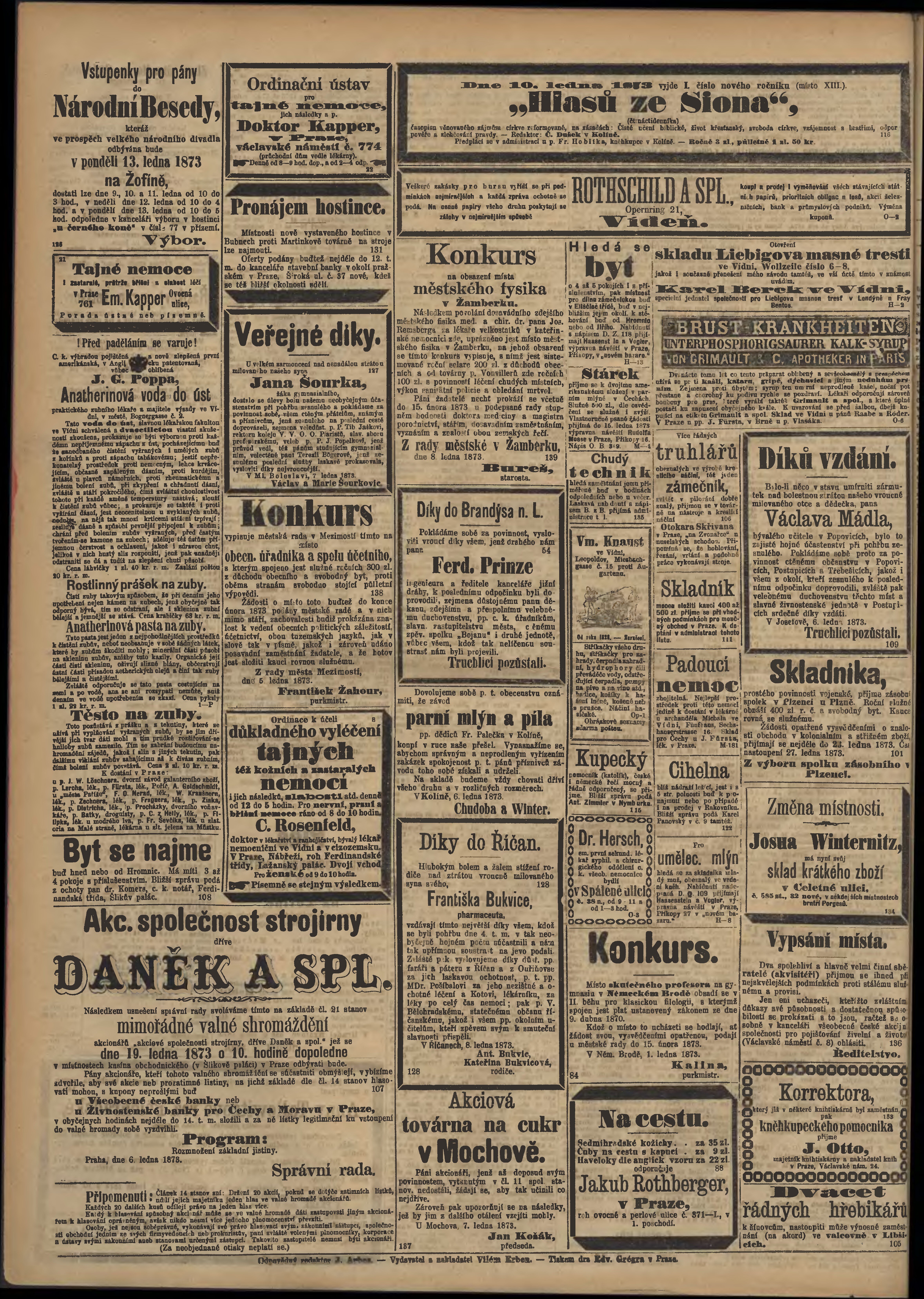 * Datum vydání výtisku: 10.1.1873 Číslo výtisku: 8