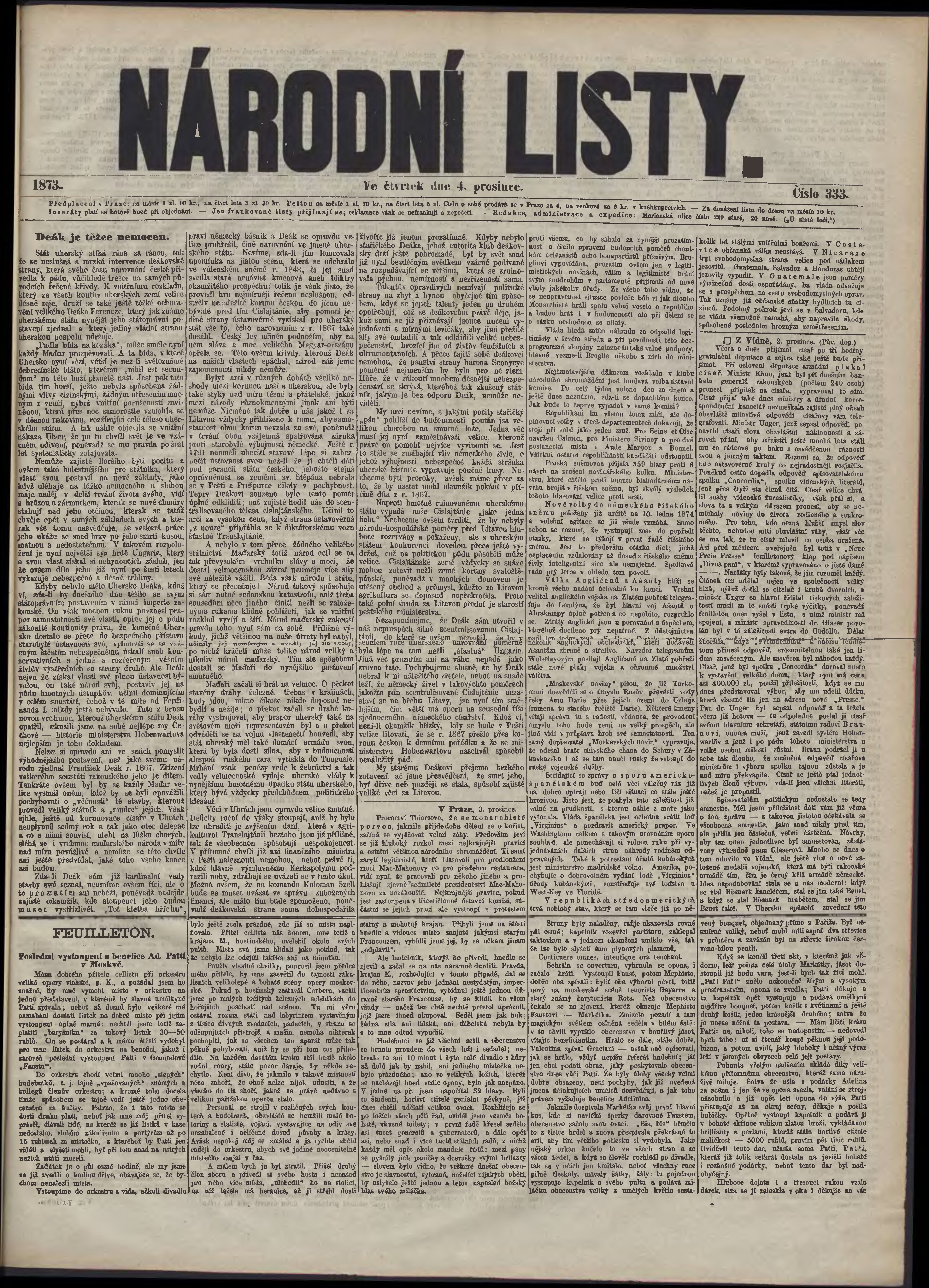 * Datum vydání výtisku: 4.12.1873 Číslo výtisku: 333