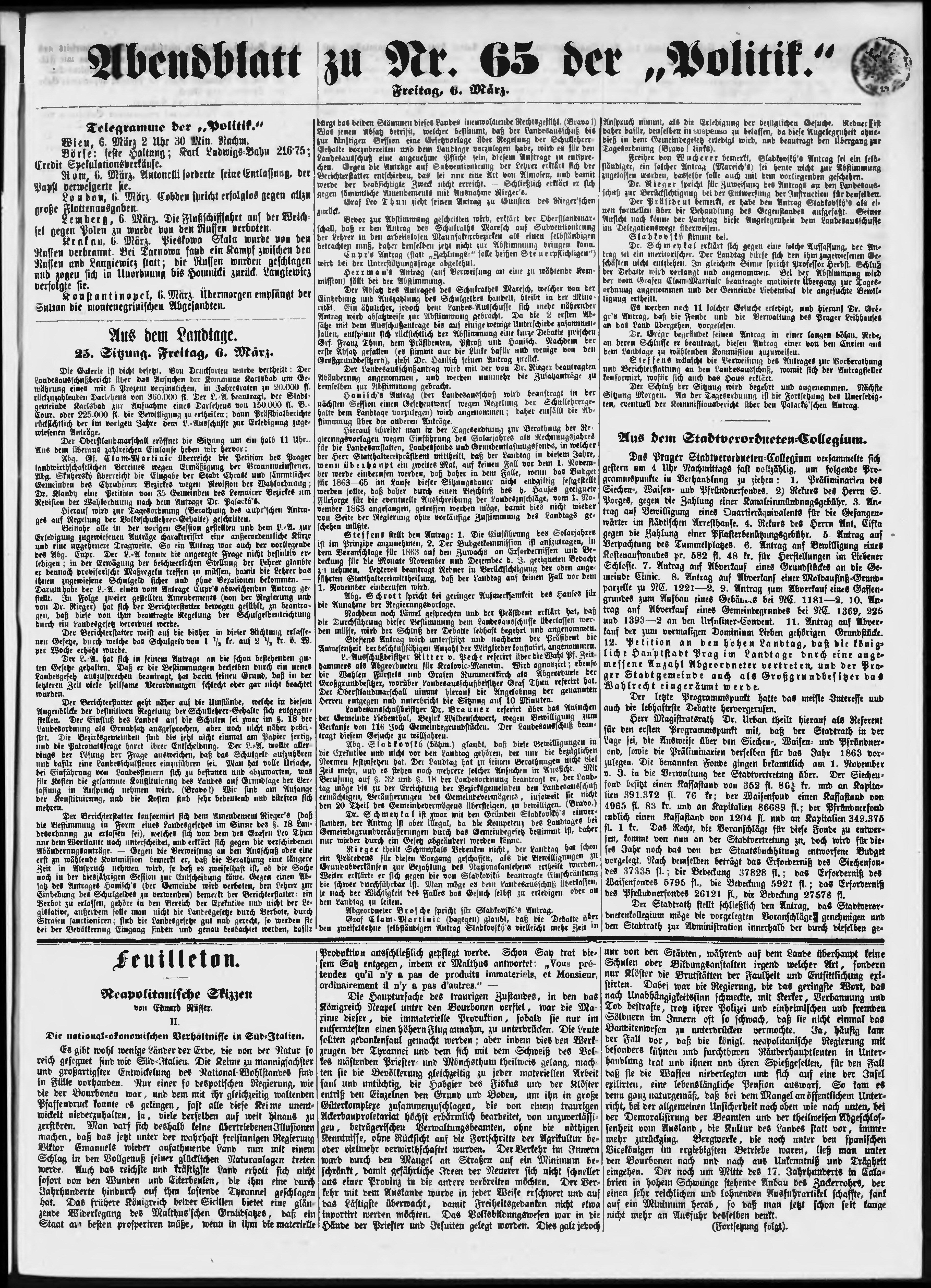 * Datum vydání výtisku: 6.3.1863 Číslo výtisku: 65 Poznámky k výtisku: večerní vydání;