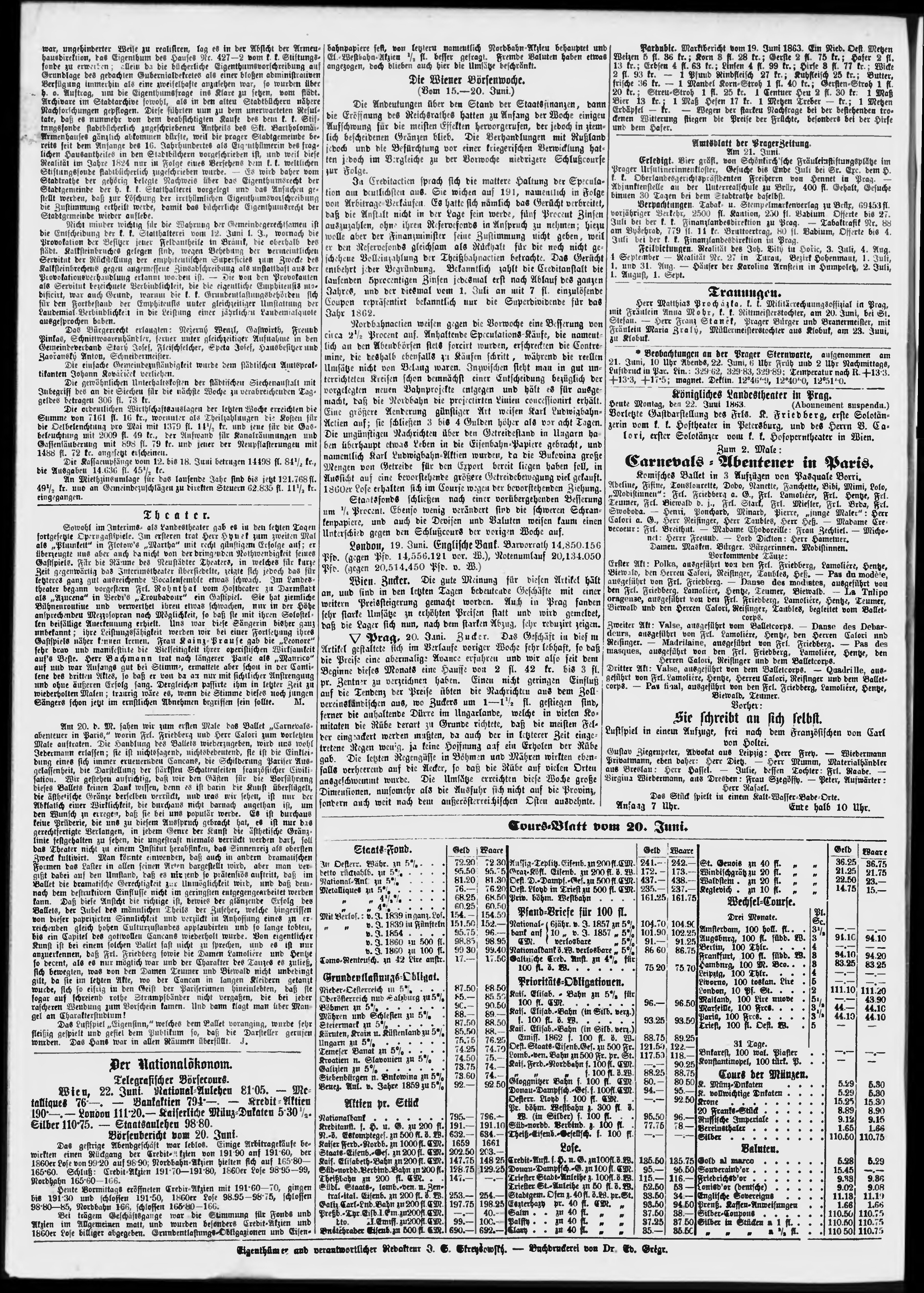 * Datum vydání výtisku: 22.6.1863 Číslo výtisku: 170 Poznámky k výtisku: večerní vydání;