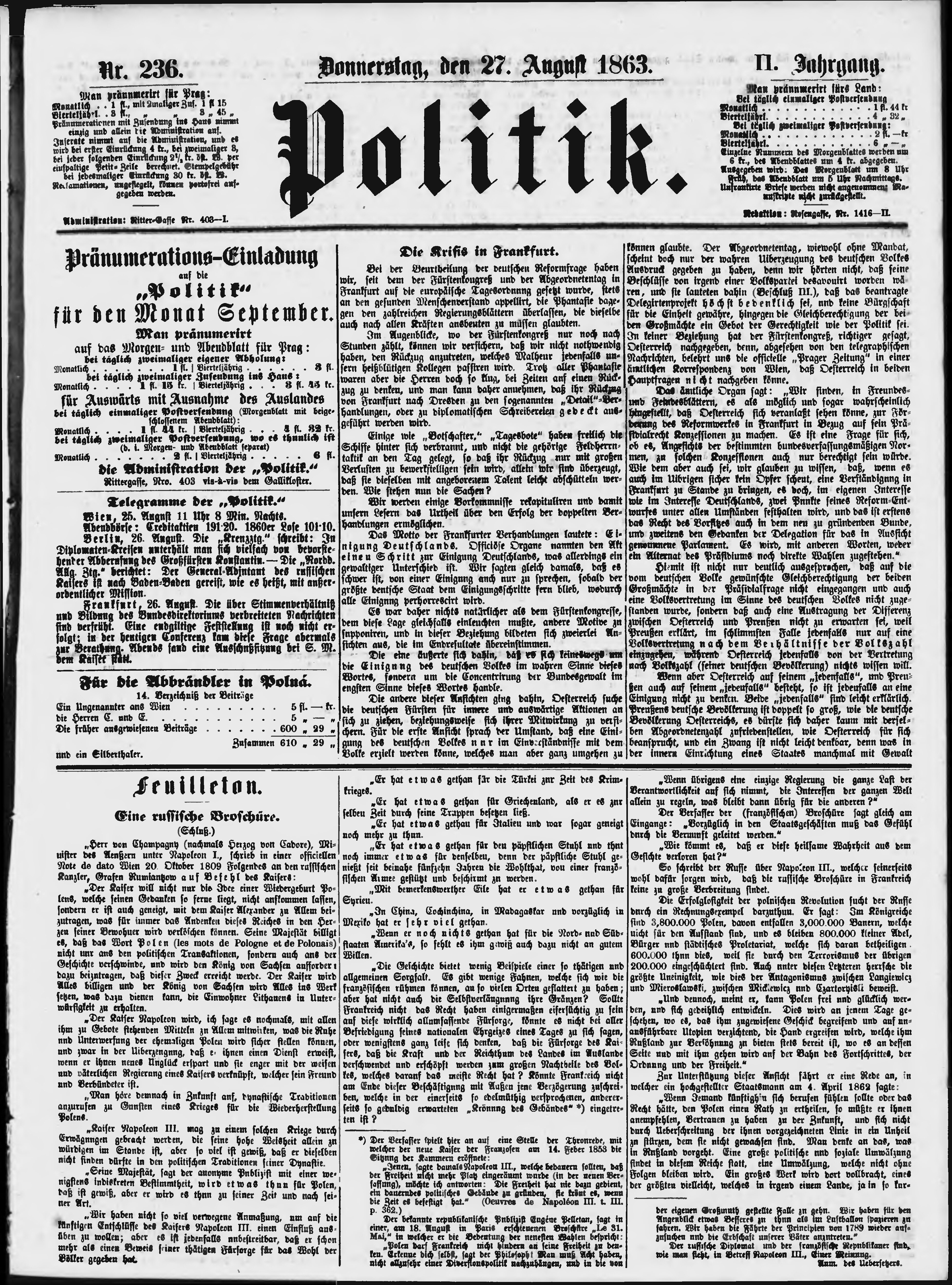 * Datum vydání výtisku: 27.8.1863 Číslo výtisku: 236