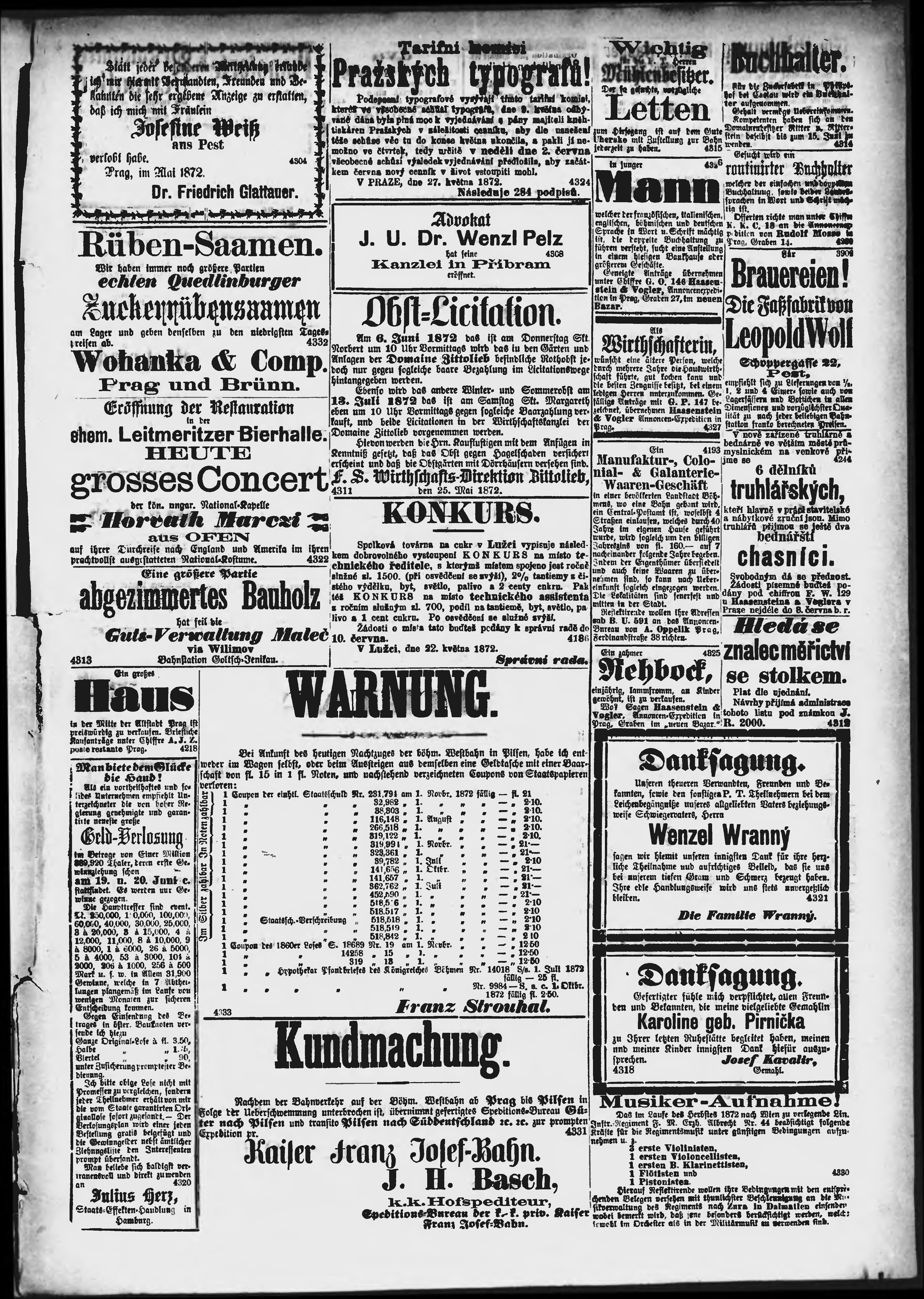 * Datum vydání výtisku: 28.5.1872 Číslo výtisku: 146
