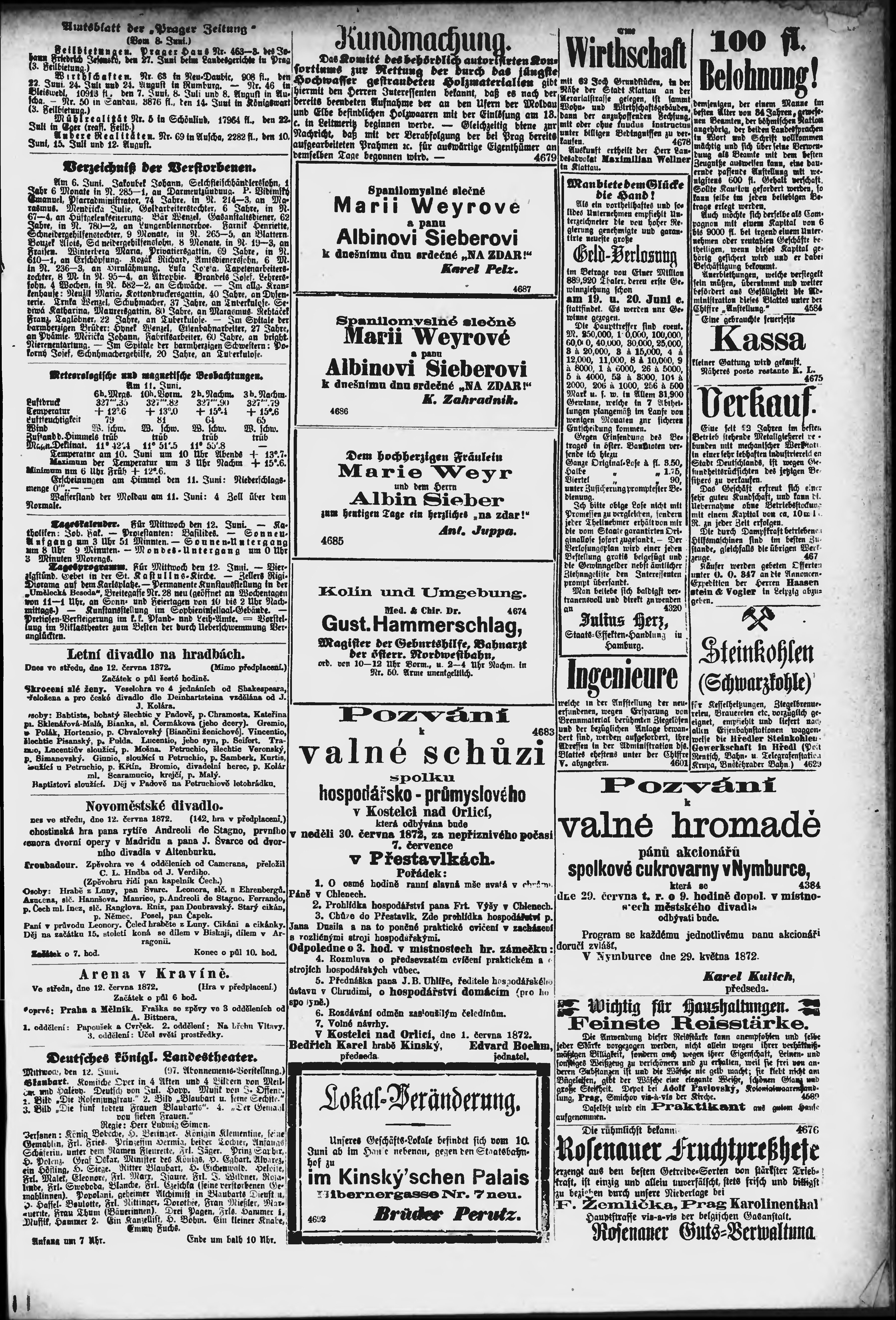 * Datum vydání výtisku: 12.6.1872 Číslo výtisku: 161