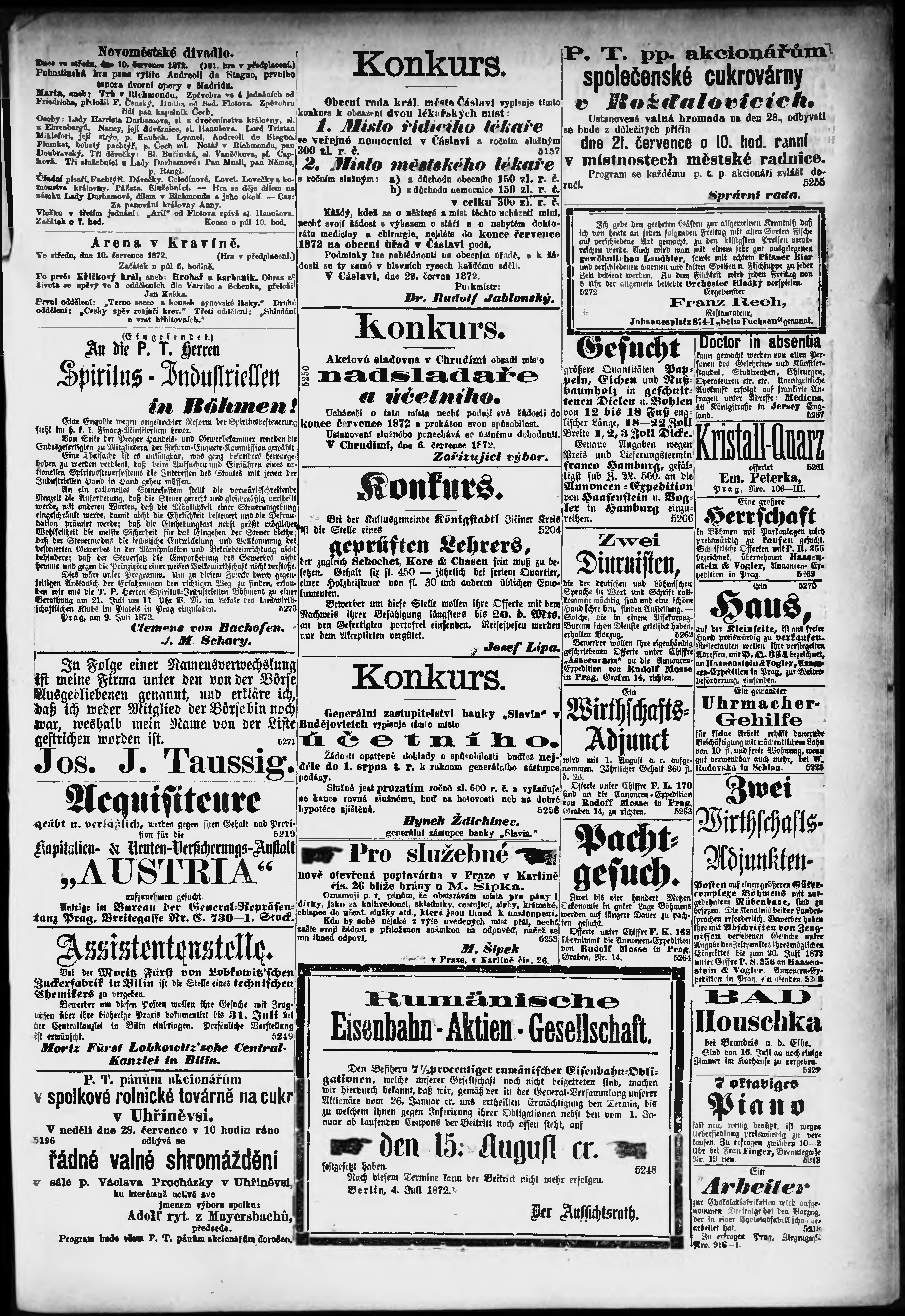 * Datum vydání výtisku: 10.7.1872 Číslo výtisku: 189 Poznámky k výtisku: s. (1) - (2), (4) poškozená předloha;