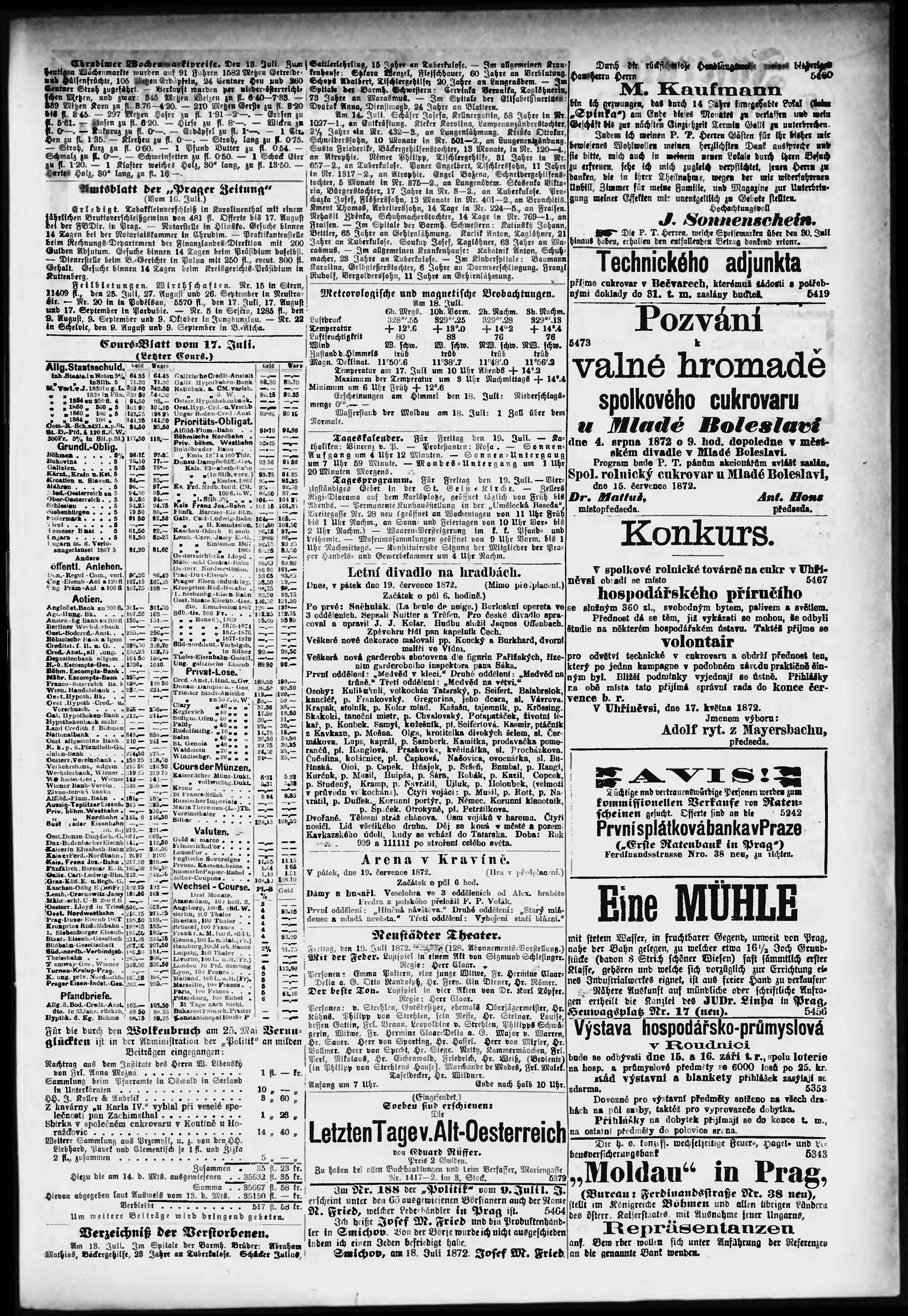 * Datum vydání výtisku: 19.7.1872 Číslo výtisku: 198