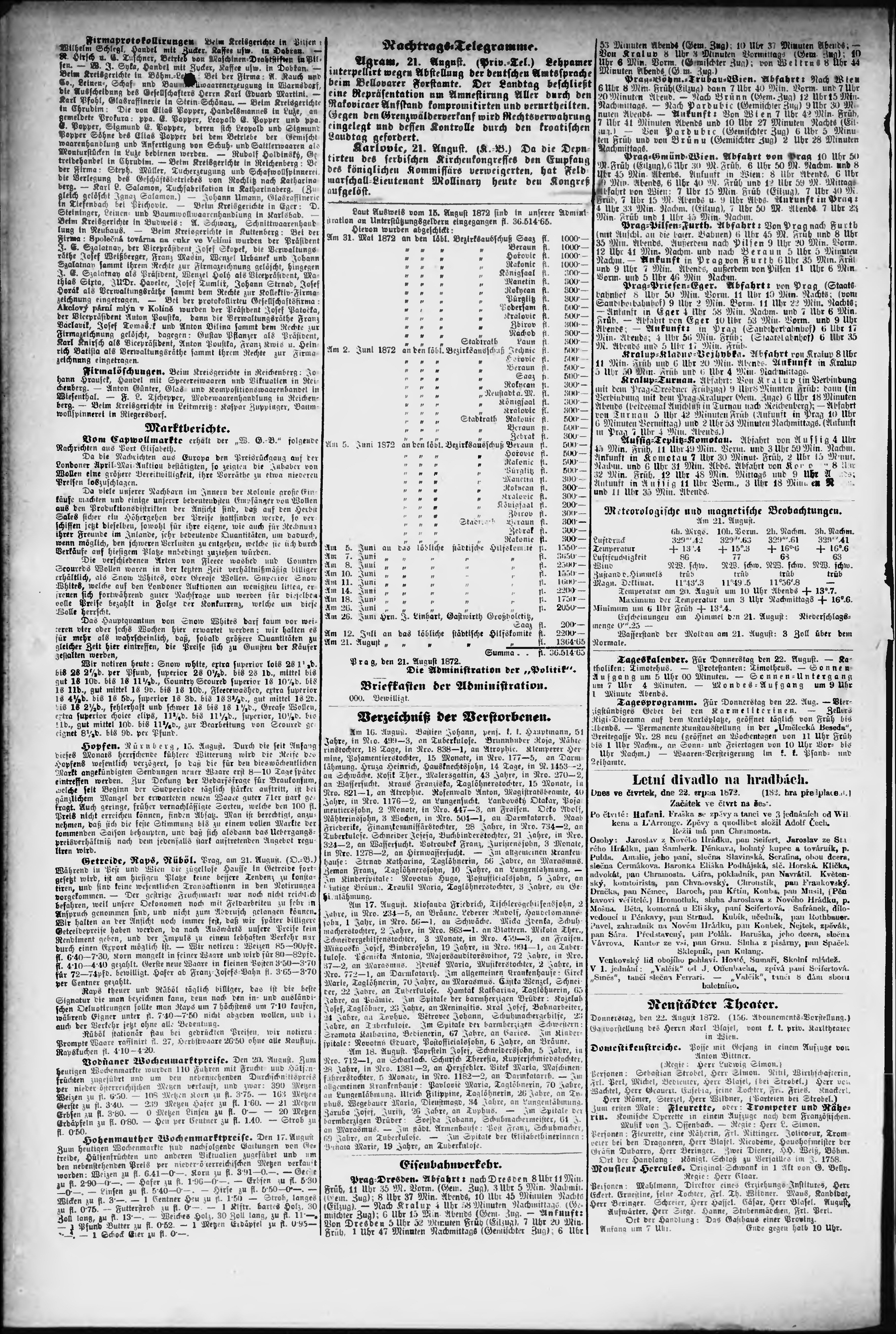 * Datum vydání výtisku: 22.8.1872 Číslo výtisku: 232