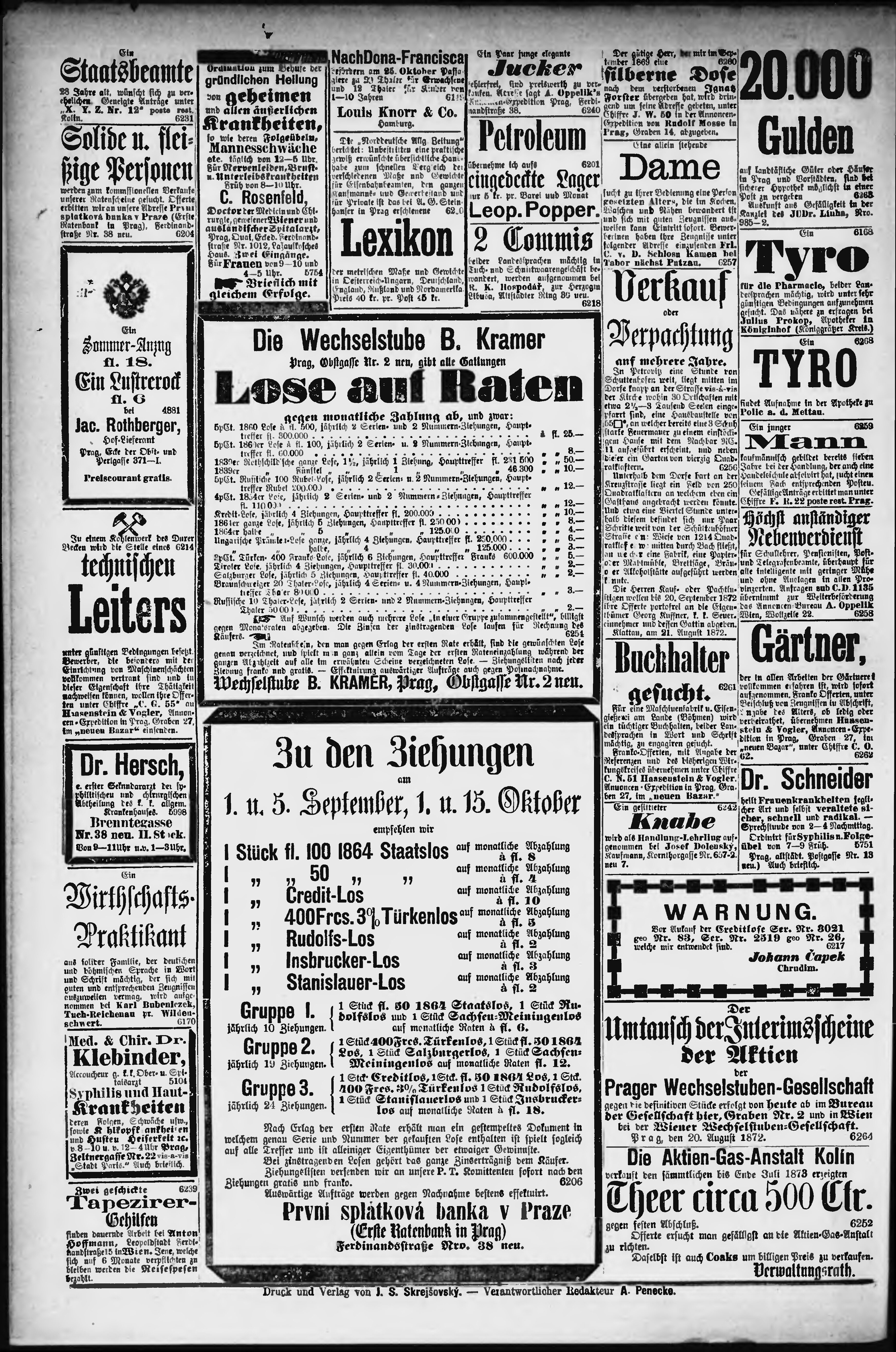 * Datum vydání výtisku: 23.8.1872 Číslo výtisku: 233
