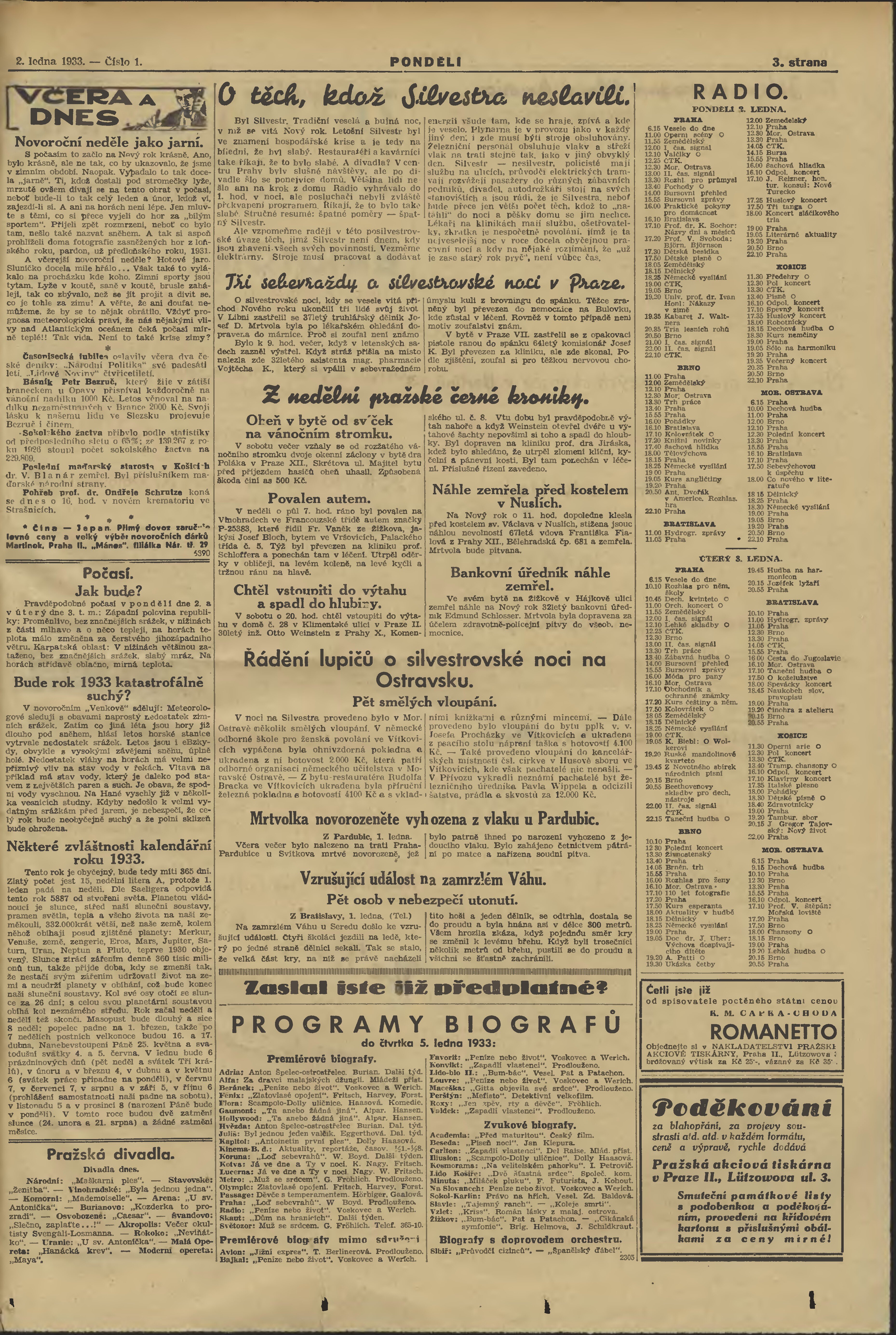 * Datum vydání výtisku: 2.1.1933 Číslo výtisku: 1