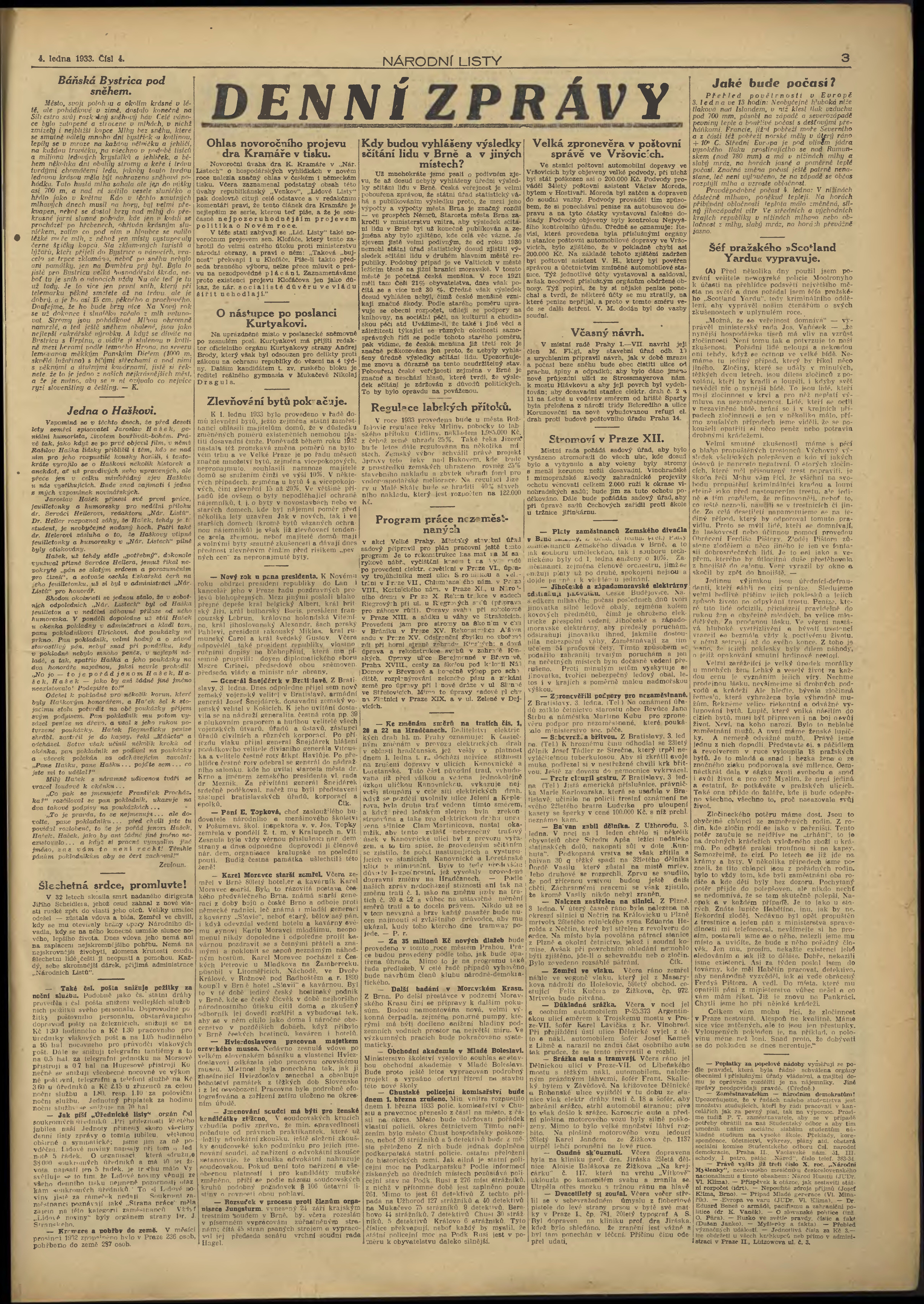 * Datum vydání výtisku: 4.1.1933 Číslo výtisku: 4